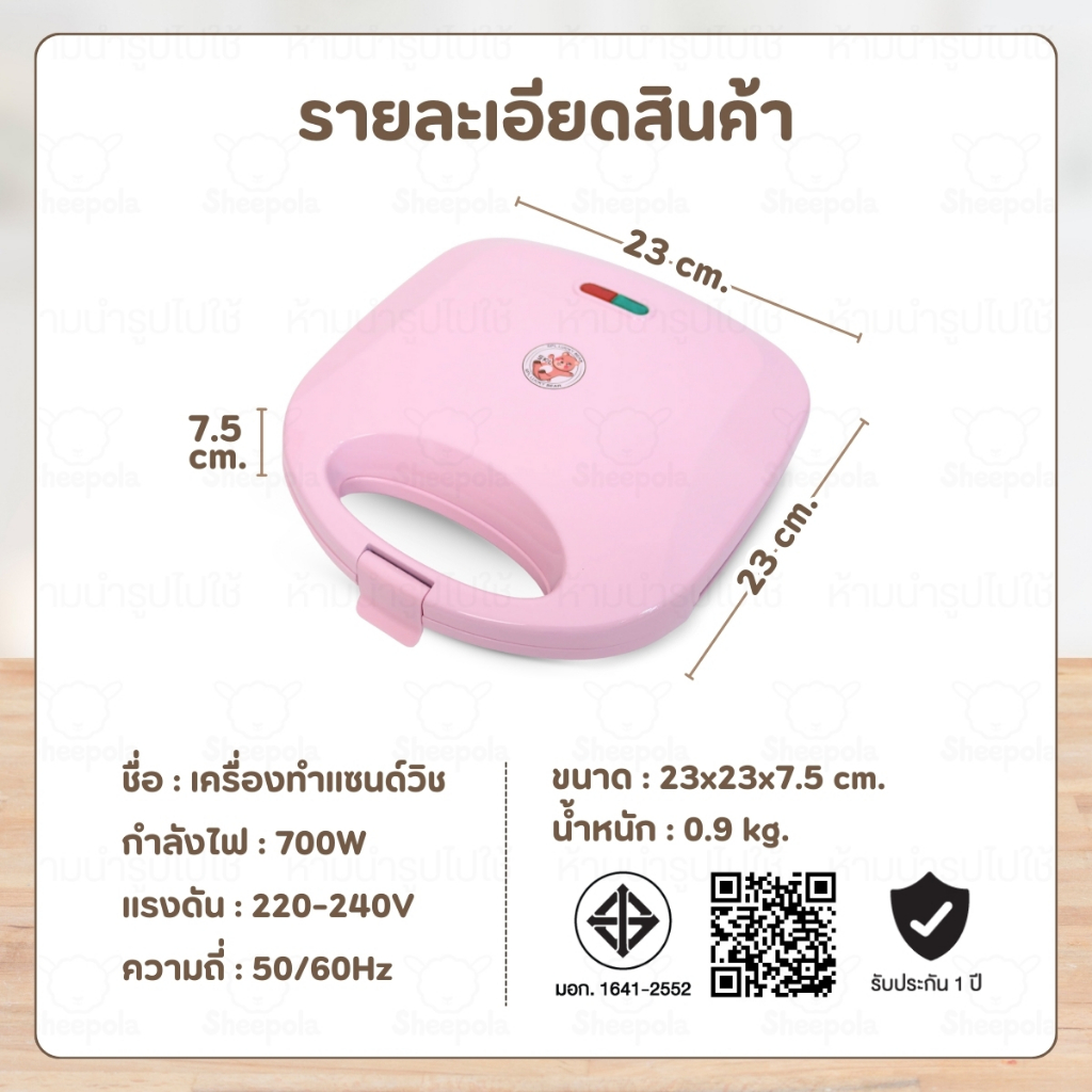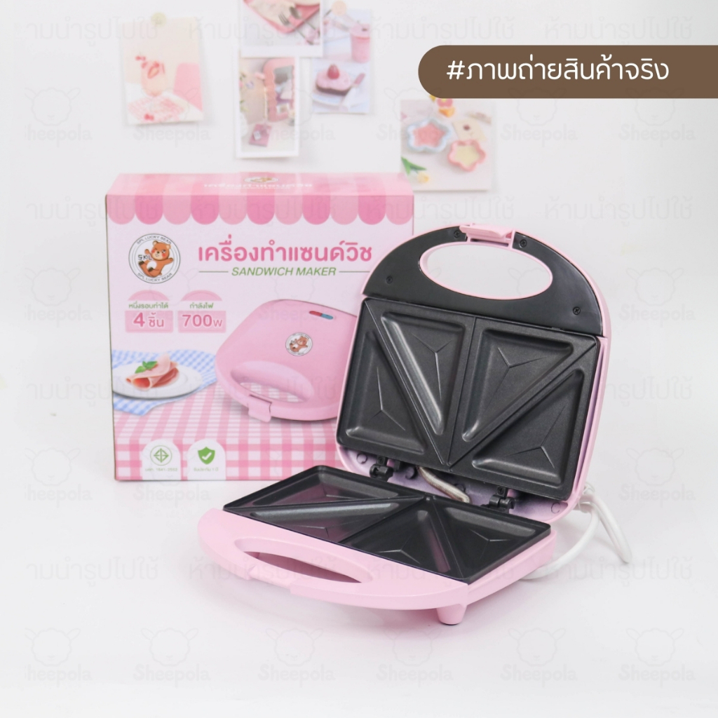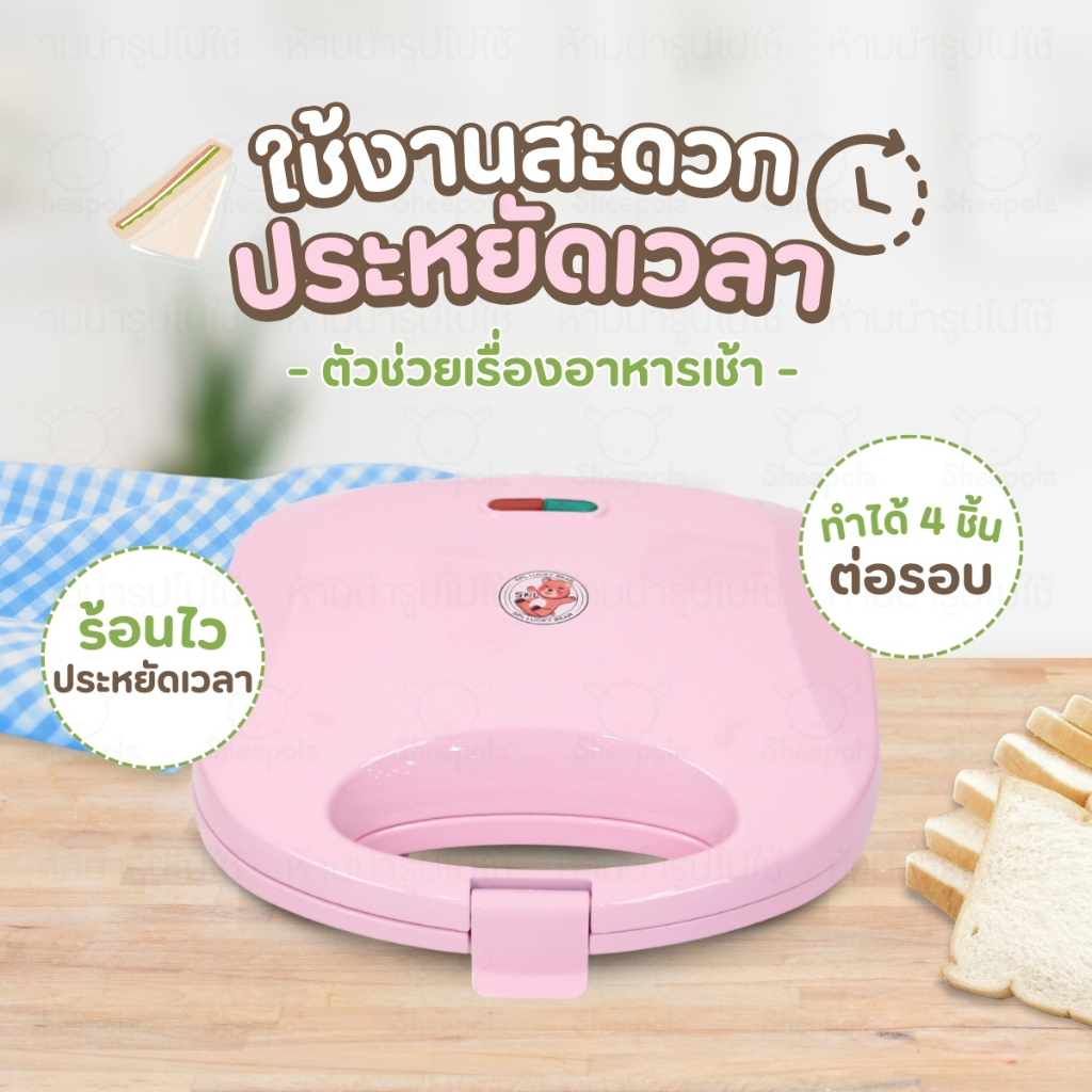 เครื่องทำแซนวิชลายหมีน่ารักๆ สีชมพู ที่อบแซนวิส เครื่องอบแซนวิช เครื่องทำขนมปัง Meka.trend