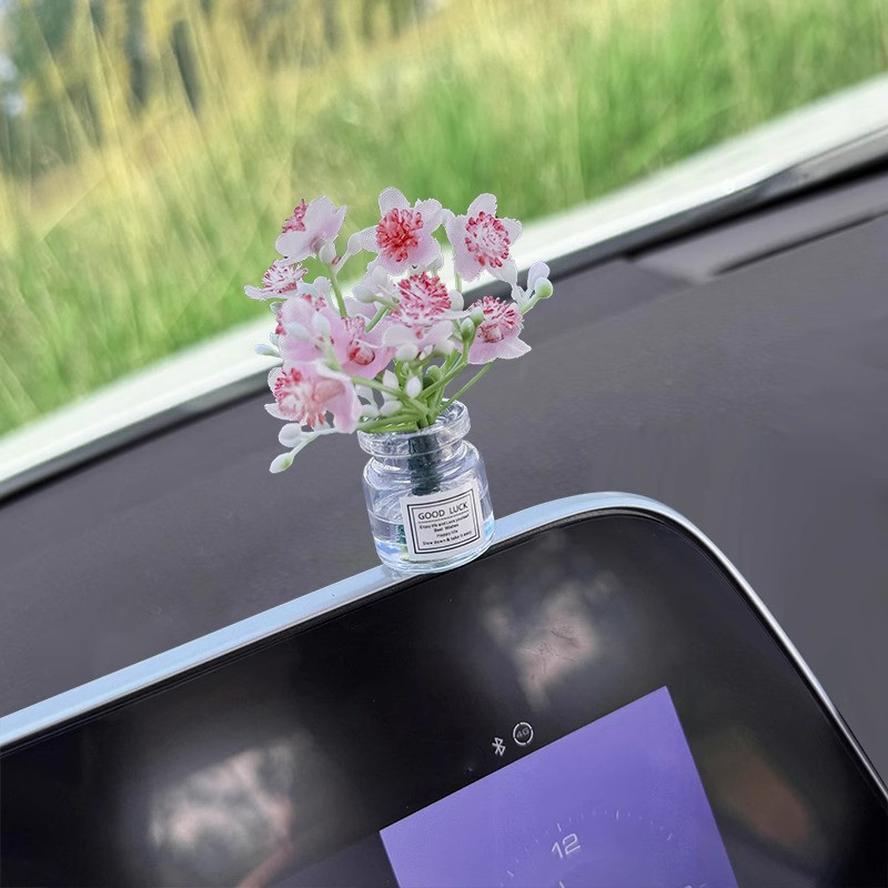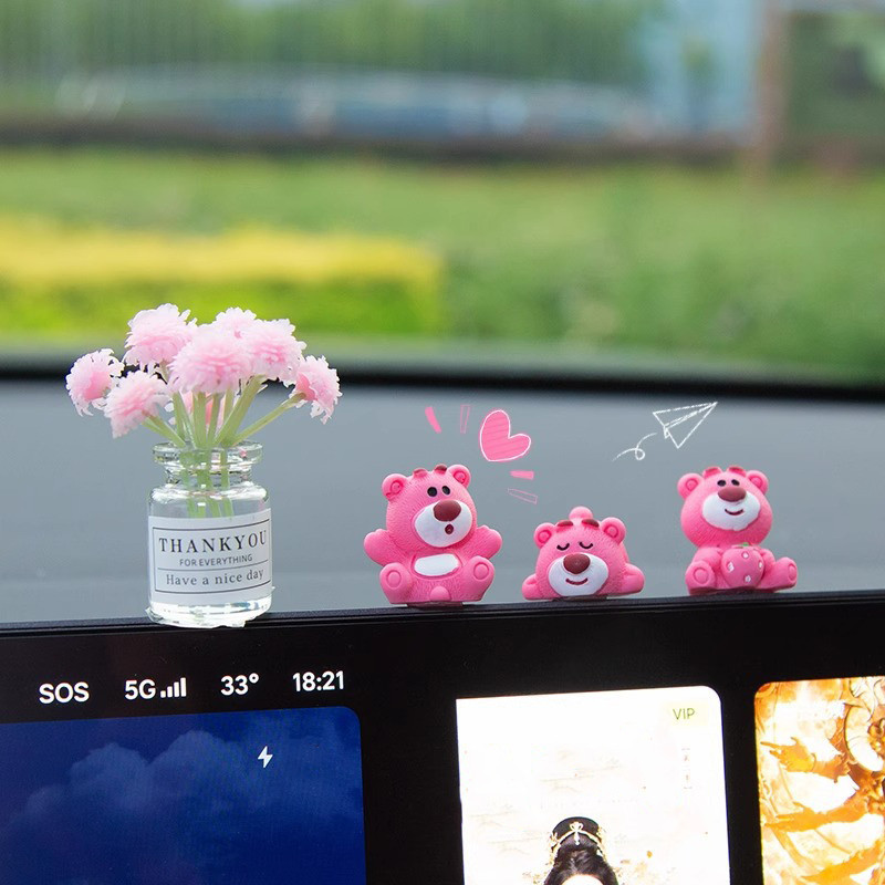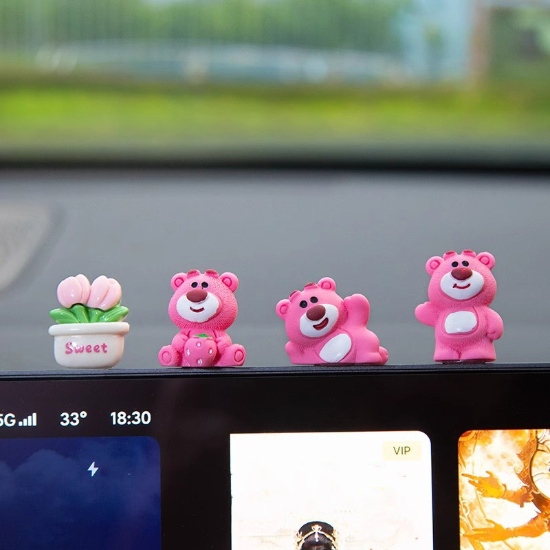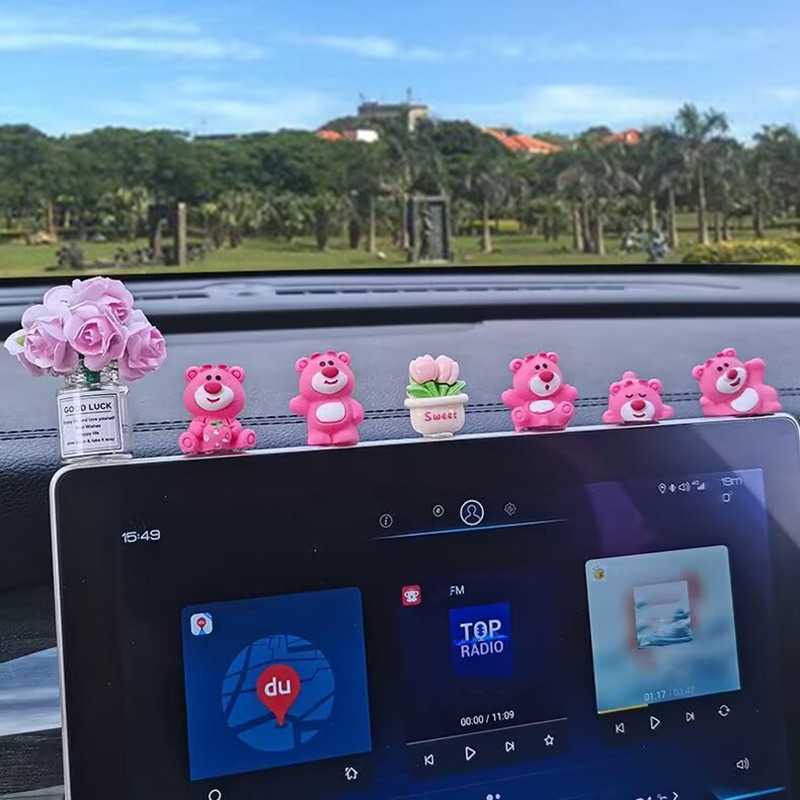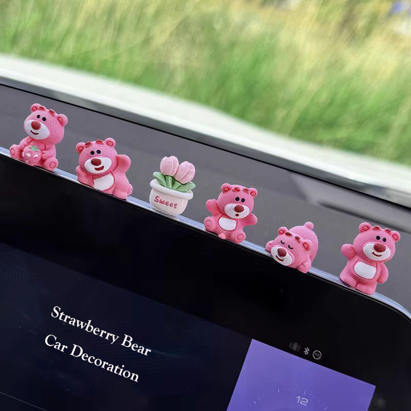 การ์ตูน สกปรก ตุ๊กตารถตกแต่งสร้างสรรค์น่ารักสัตว์สตรอเบอร์รี่หมีจําลองดอกไม้รถคอนโซลแสดงภายในรถมินิอุปกรณ์เสริม