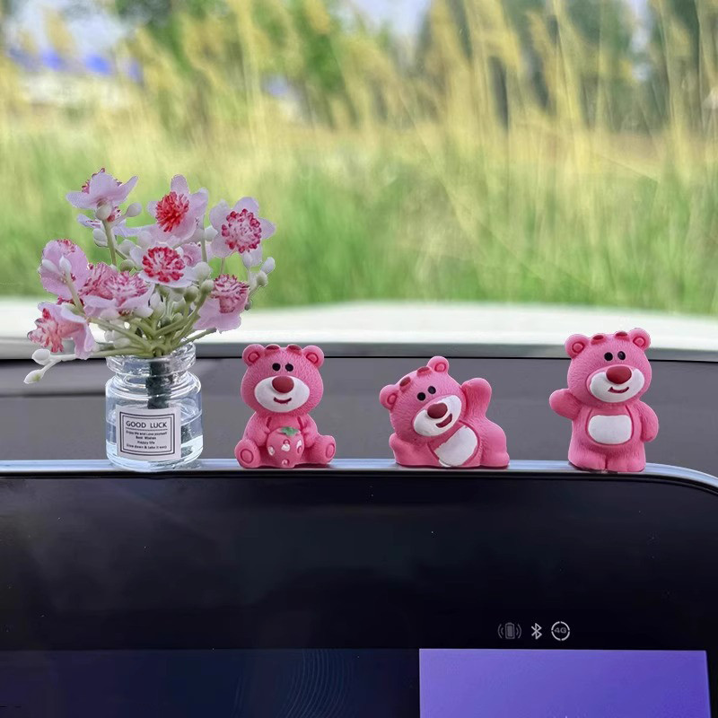ใหม่น่ารักสตรอเบอร์รี่หมีจำลองดอกไม้ตกแต่งภายในรถตัวเลขการกระทำกระจกมองหลังอัตโนมัติแผงหน้าปัดเครื่องประดับขอ