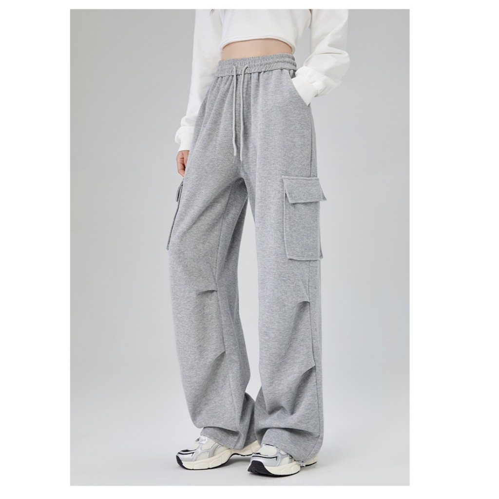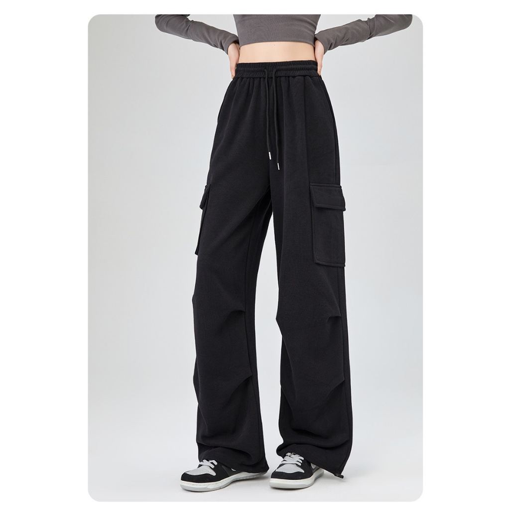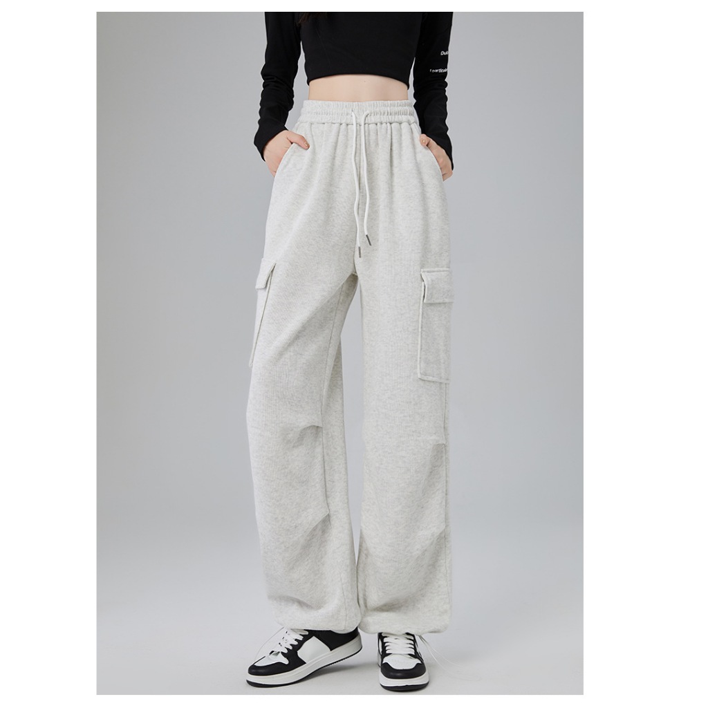 กางเกงกีฬาอเมริกัน กางเกงคาร์โก้ผู้หญิง กางเกงลำลองทรงหลวม มีเชือกผูก ผ้าใส่สบาย