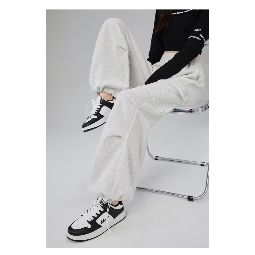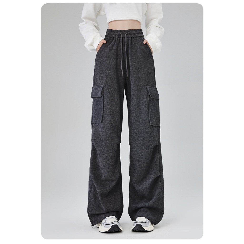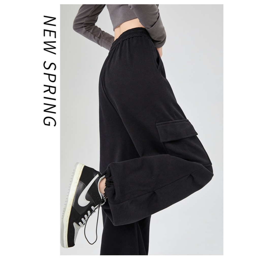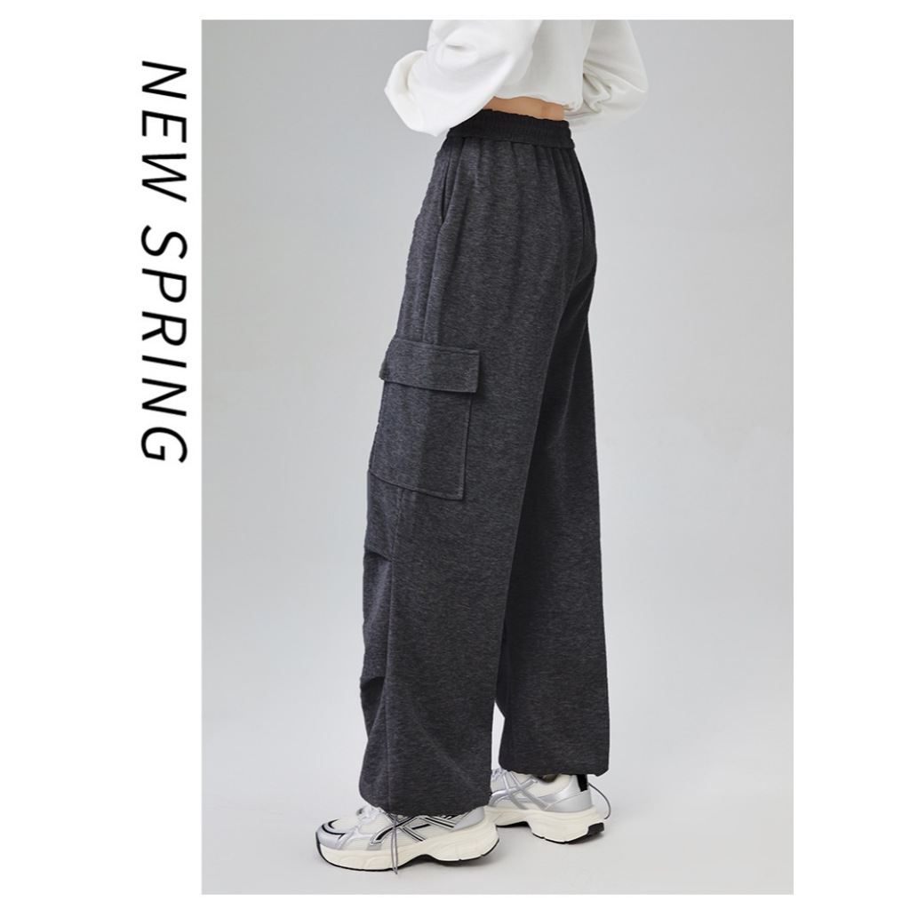 กางเกงกีฬาอเมริกัน กางเกงคาร์โก้ผู้หญิง กางเกงลำลองทรงหลวม มีเชือกผูก ผ้าใส่สบาย