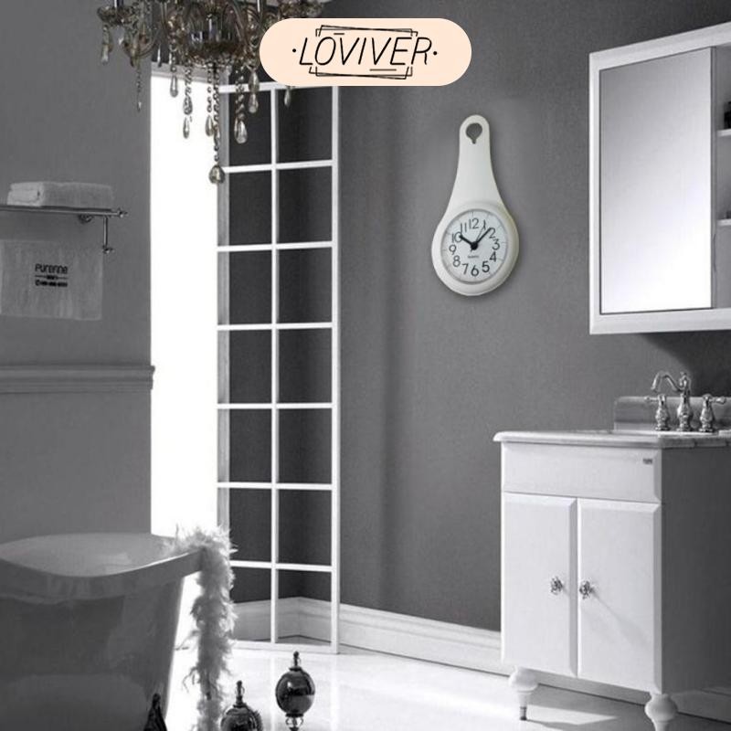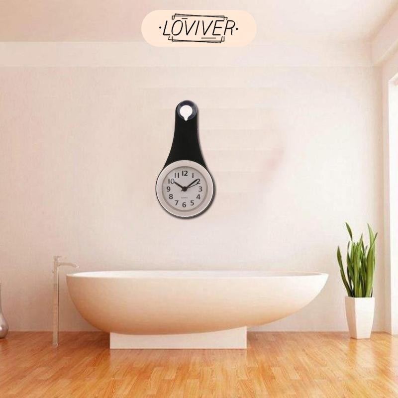 LOVIVER กันน้ําห้องน้ําห้องอาบน้ํานาฬิกาติดผนังถ้วยดูดเวลานาฬิกาแสดงสําหรับห้องครัวห้องน้ํา