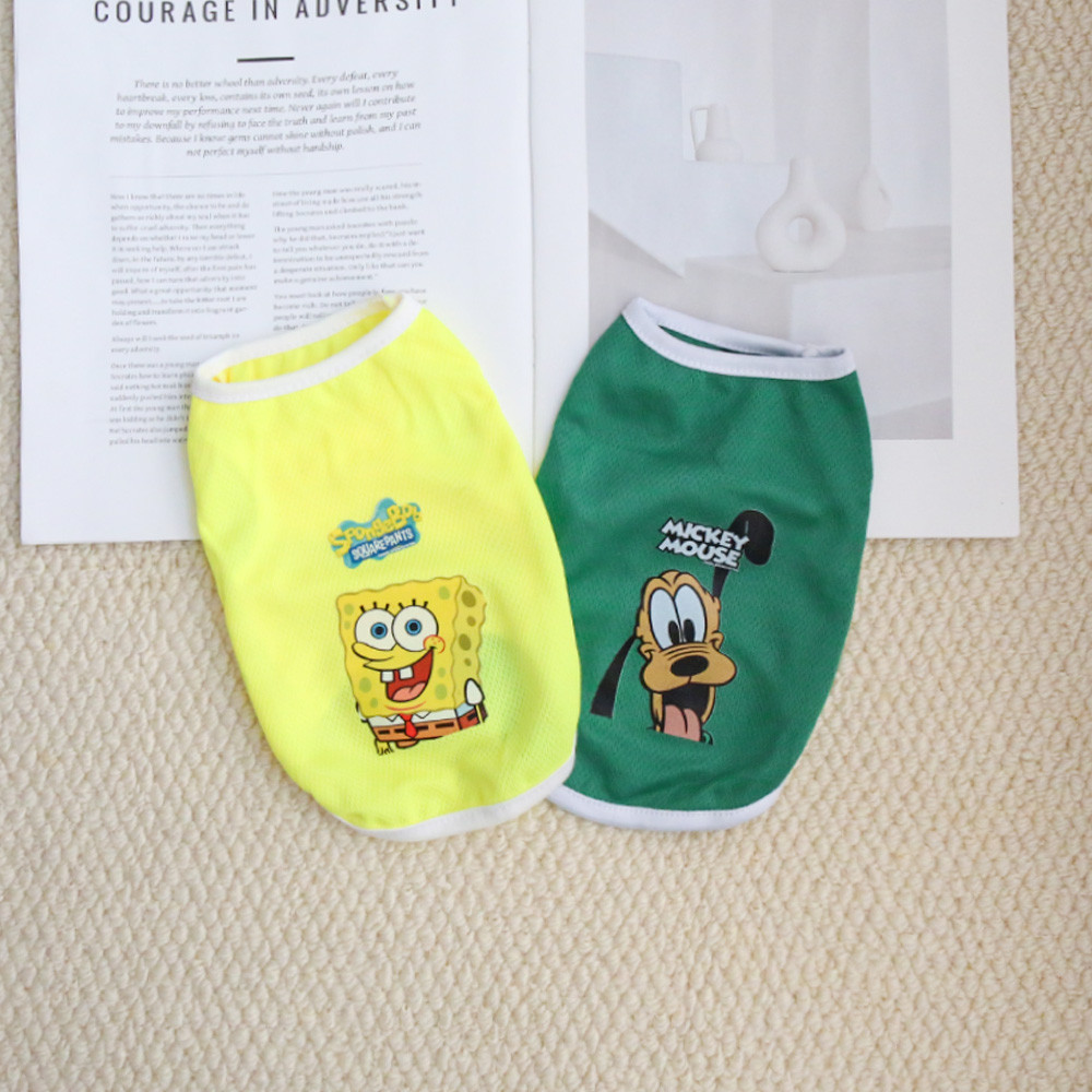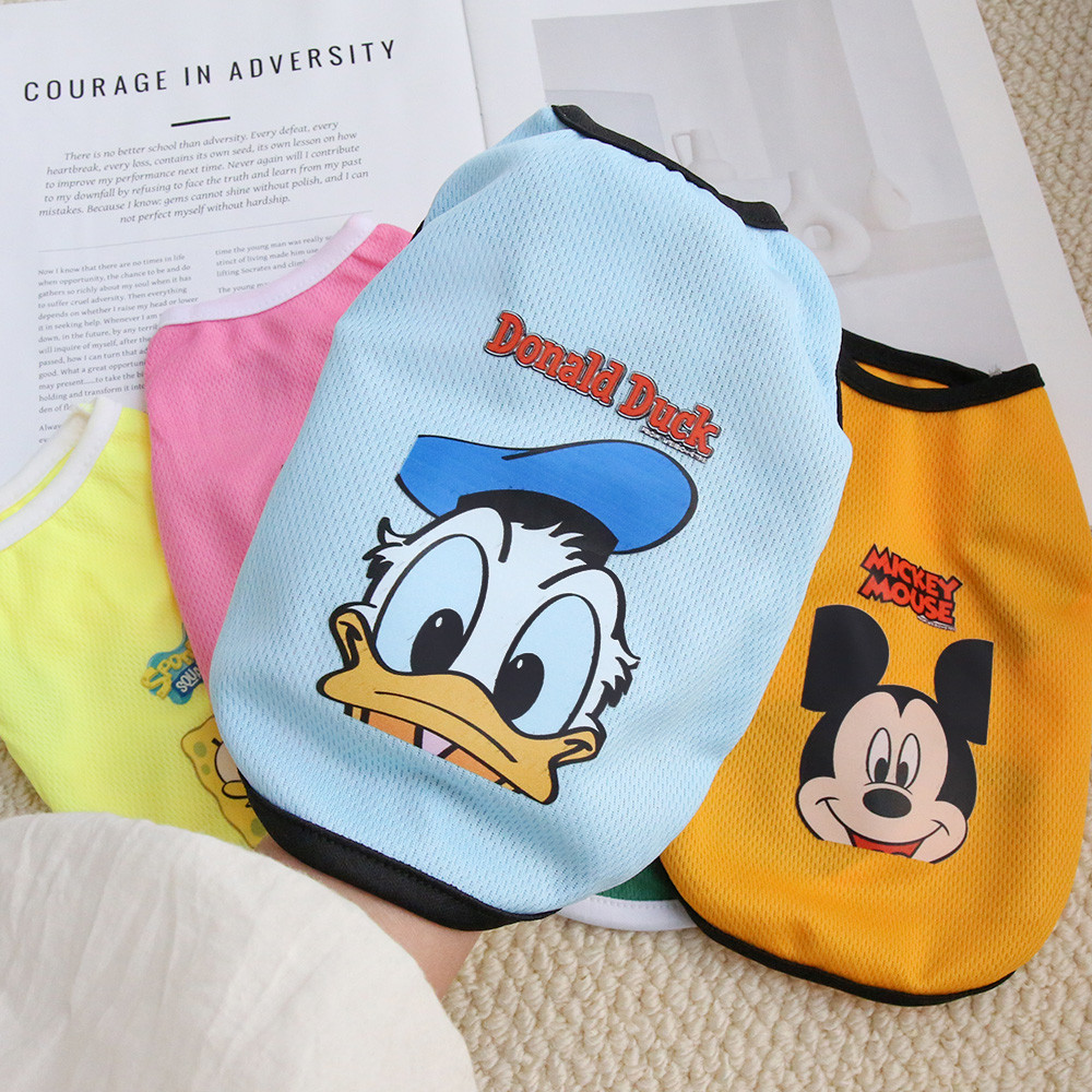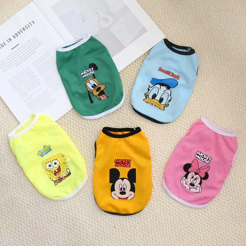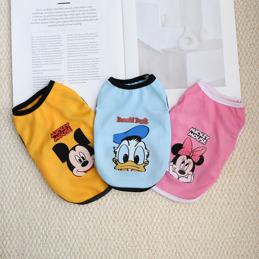 เสื้อกั๊กสุนัขฤดูร้อนระบายอากาศการ์ตูนมิกกี้เมาส์น่ารักพิมพ์แมวสุนัขเสื้อผ้าแขนกุดสากล
