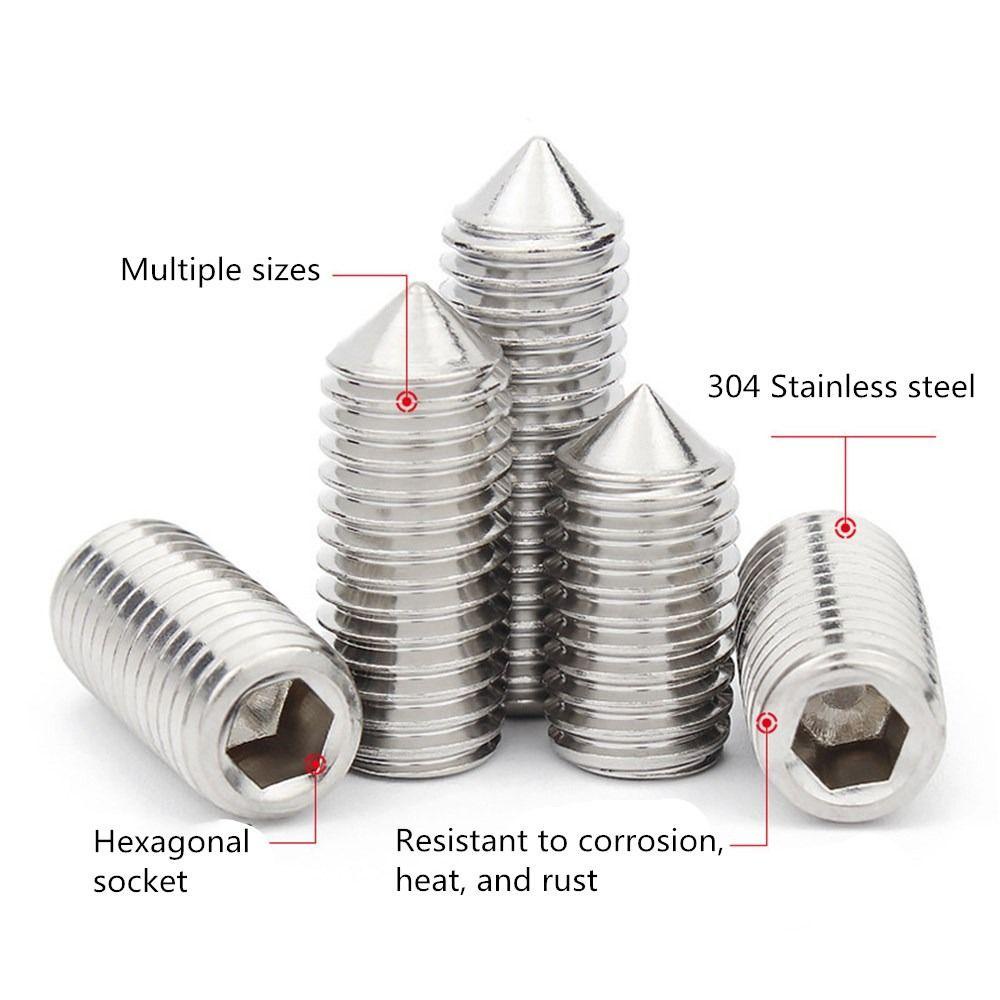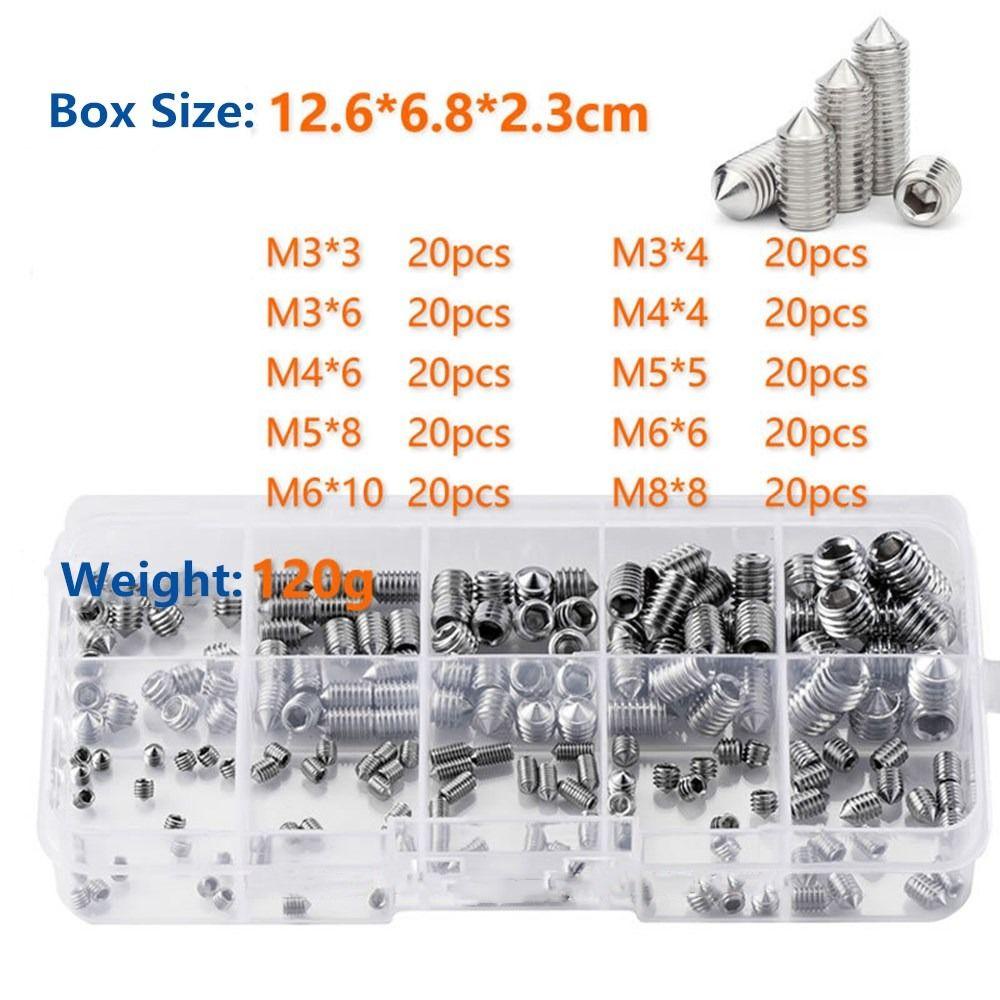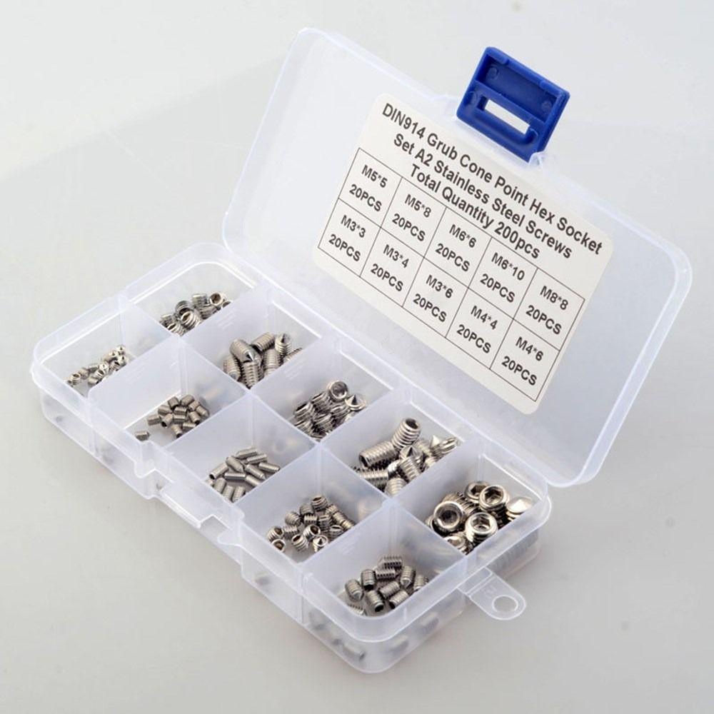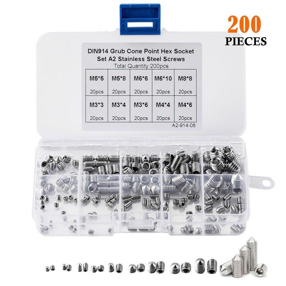 LONMI 200 ชิ้น Allen หัวซ็อกเก็ต Hex Grub, 304 สแตนเลส M3 M4 M5 M6 M8 ชุดสกรู, สกรูสแตนเลสกรวยสกรู Assortment ชุดห้องน้ําติดตั้ง
