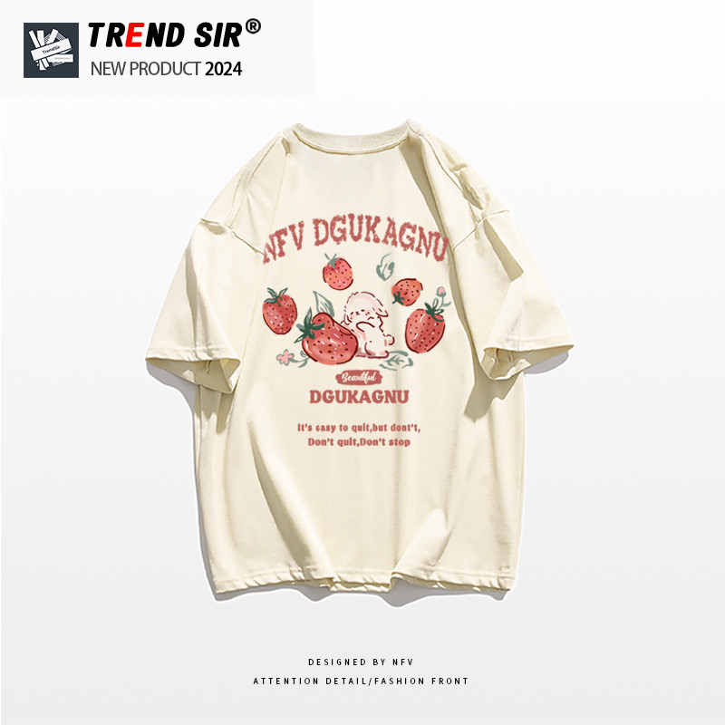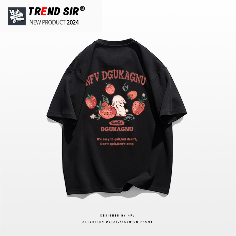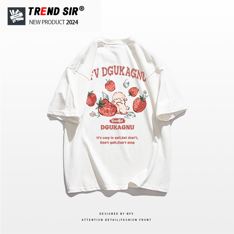 TrendSir?มาใหม่ ลายเยอะ ผ้าดีมาก?เสื้อยืด summer เสื้อยืด oversize ชีวิตแรกเสร็จของสตรอเบอร์รี่รสหวานที่บริสุทธิ์ คอกลม?100% Cotton M-3XL