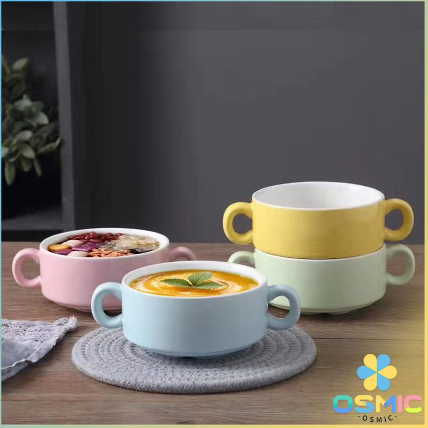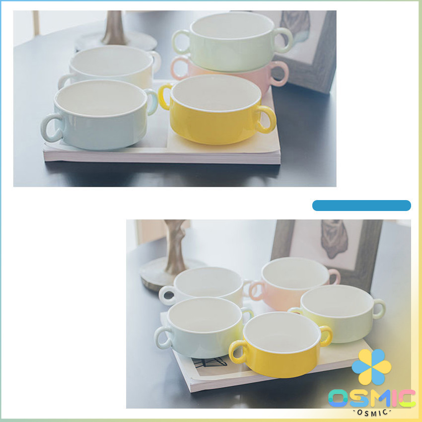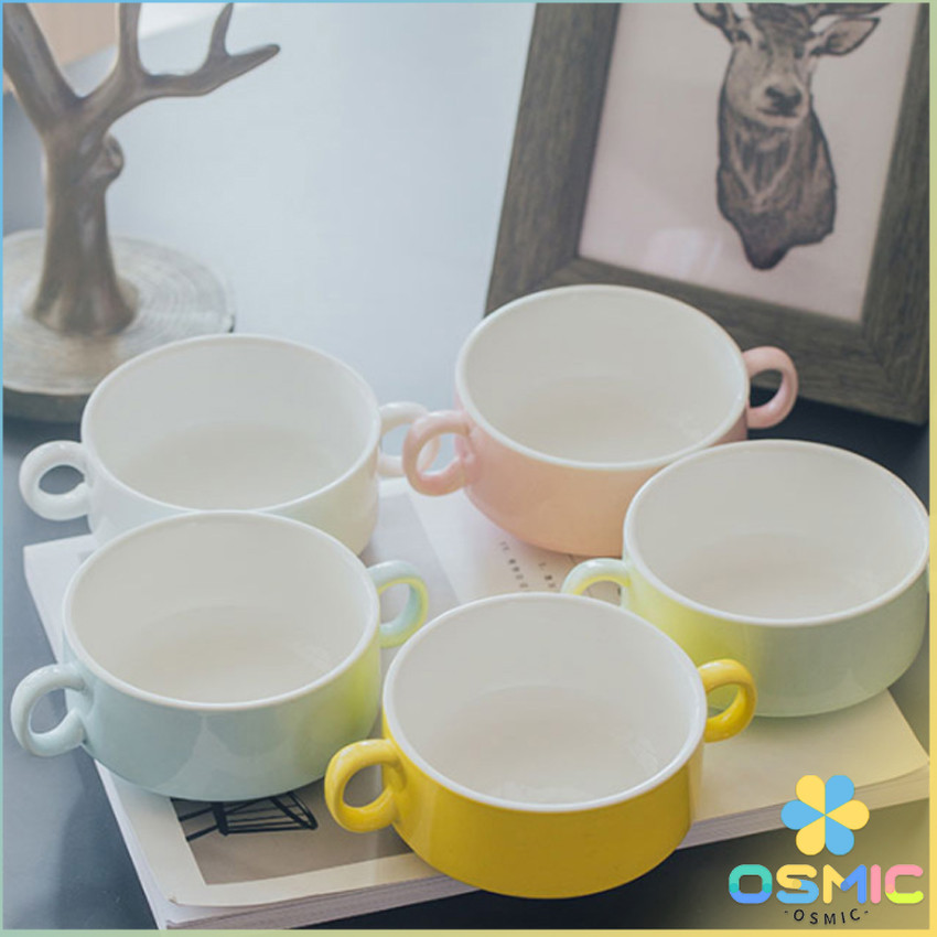 MIC ถ้วยซุป เซรามิกส์ ชามซุป ถ้วยโจ๊ค มีหูจับทั้งสองด้านสีสันสะดุดตา Soup cup
