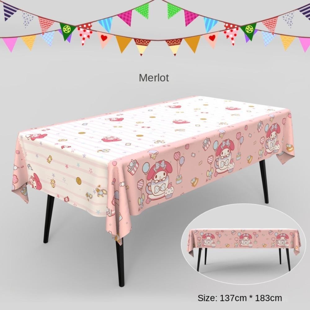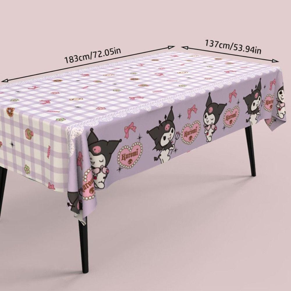 Lontime ผ้าปูโต๊ะการ์ตูน Cinnamoroll, Melody Party Supplies เบาะรองนั่งโต๊ะปิคนิค,แฟชั่น PE กันน้ํา Kuromi Birthday Party ผ้าปูโต๊ะ