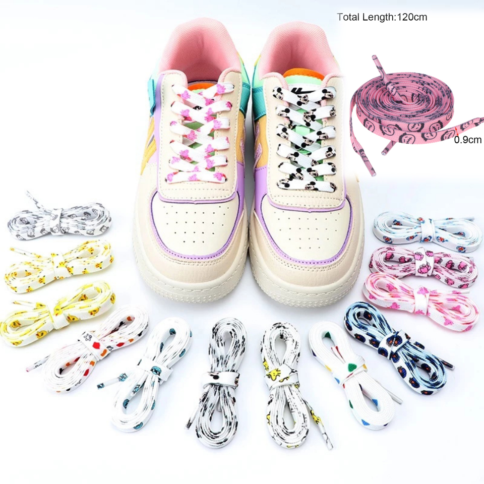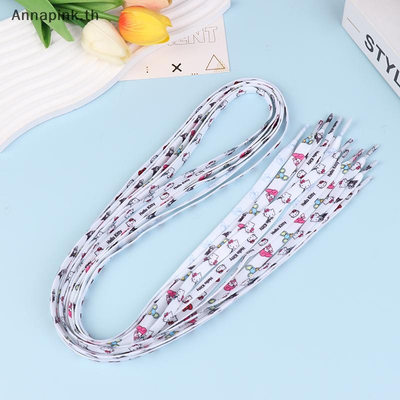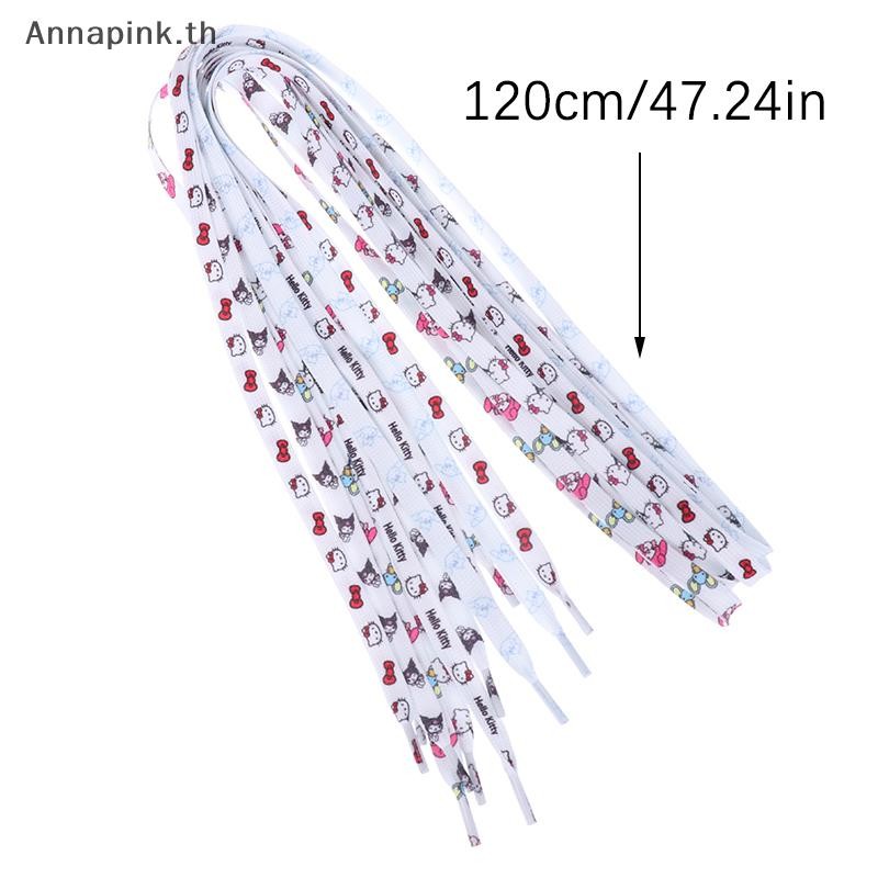 Annapink.th 2 ชิ้น Sanrio Shoelaces การ์ตูนอบเชย Kuromi Hello Kitty แฟชั่นรองเท้าแบน Laces อุปกรณ์เสริมเชือกผูกรองเท้า 120 ซม.สาวของขวัญ EN