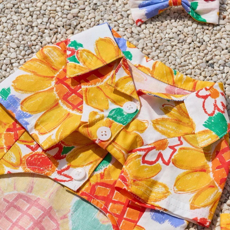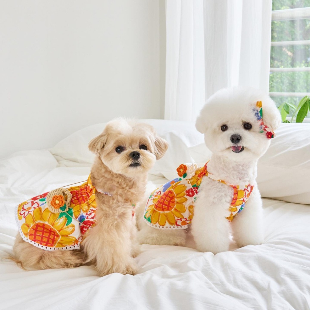 Sunflower Summer Pet Cloth ชุดซัมเมอร์สำหรับสัตว์เลี้ยง เนื้อผ้าคอตตอนระบายอากาศดี พิมพ์ลายดอกทานตะวันสดใส เหมาะสำหรับพาน้องไปเที่ยวหรือเล่นสงกรานต์ ทุกออเดอร์แถมกิ๊ฟติดผมลายดอกทานตะวัน แมทช์กับชุด มีให้เลือกทั้งแบบกระโปรงและทรงตรง เพื่อลุคที่แตกต่างตามคว