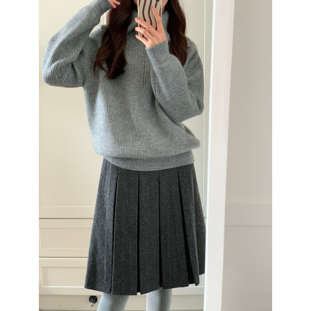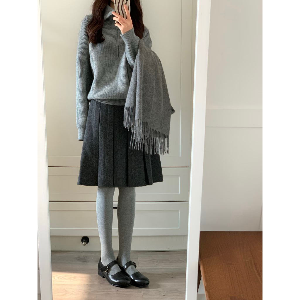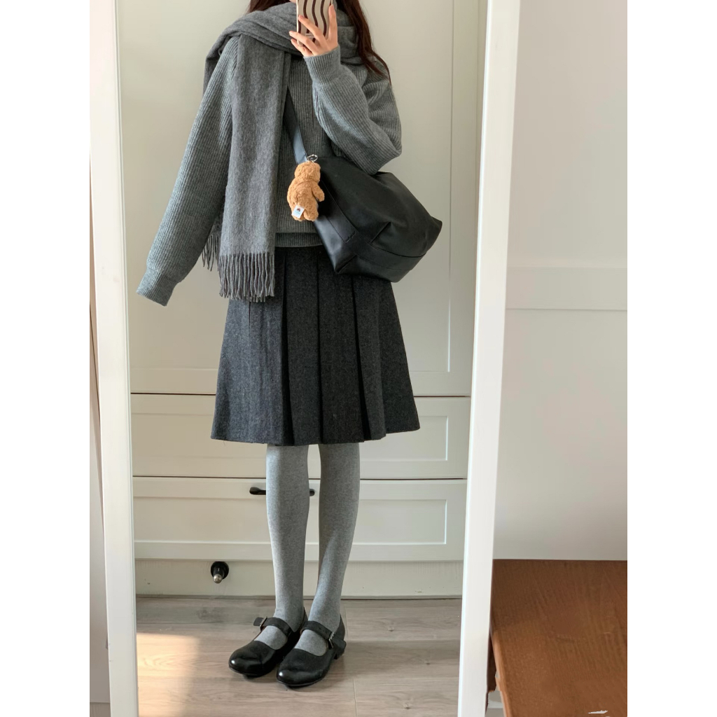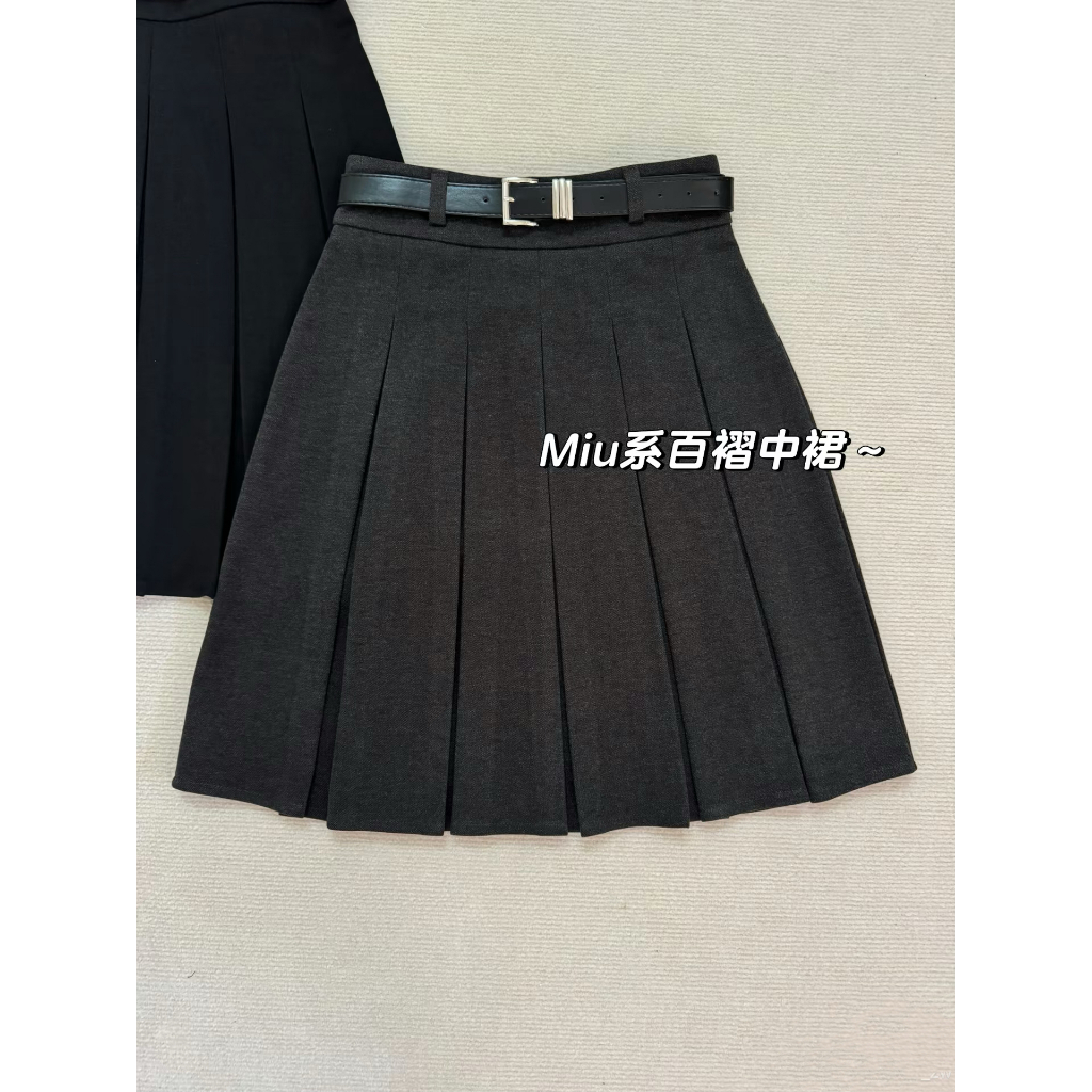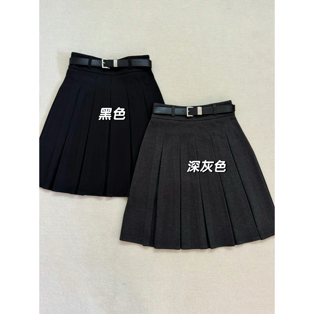 เข็มขัดกระโหลกสีเทาเข้ม ทำจากผ้าขนสัตว์แบบจีบกระโปรง