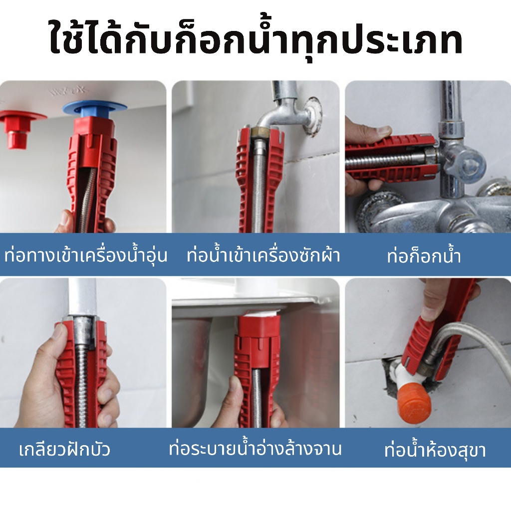 ประแจขันน๊อตพลาสติกใต้อ่าง ขันน๊อตใต้ซิงค์ อเนกประสงค์ 8in1 เปลี่ยนหัวได้ ใต้อ่างล้างหน้า