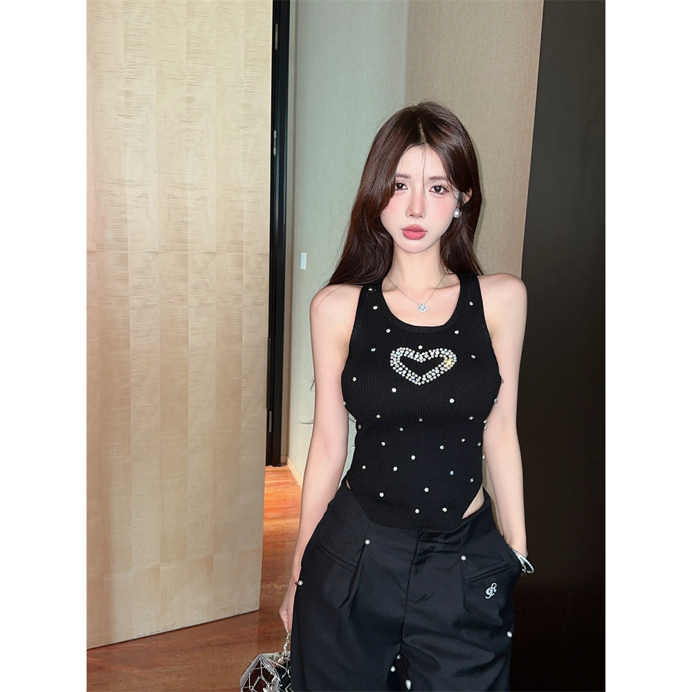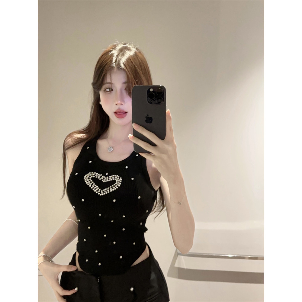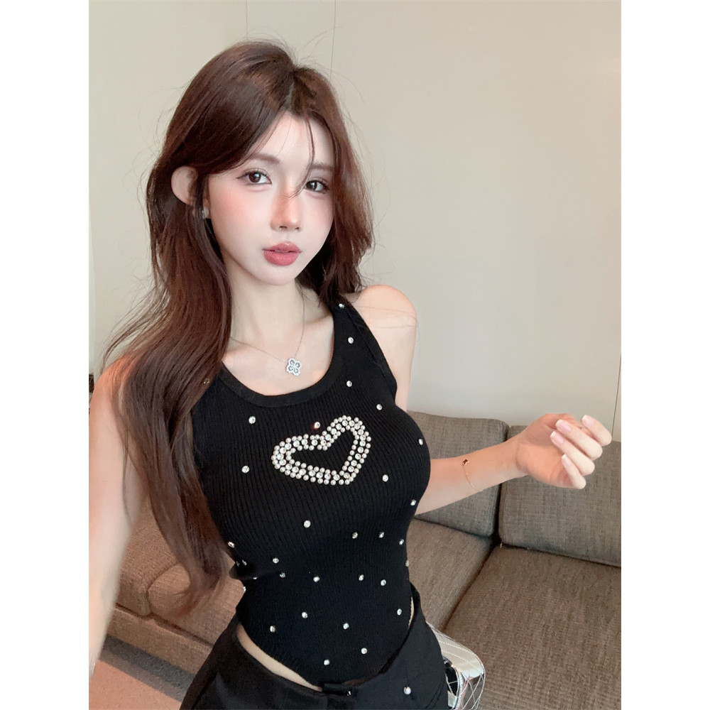 ?Evelyn?เสื้อแขนกุด ผู้หญิง สุดเซ็กซี่ เสื้อกล้ามไหมพรม ผ้าร่องยืดกำลังดี ใส่ง่าย แต่งปักหมุดหัวใจ ส่งไวจากไทย#80061-22