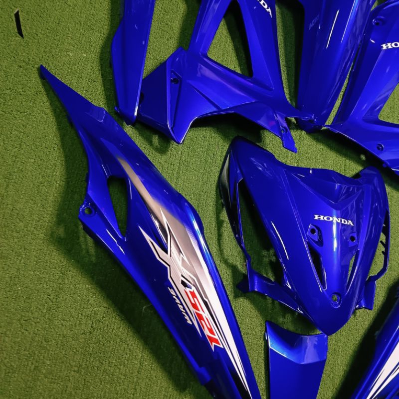 ชุดสี WAVE เวฟ125X(100X) สี น้ำเงินแก้ว พร้อมติดลาย 10ชิ้น ลูกค้าสามารถเลือกสีและลายได้ตามต้องการทักแชทได้เลย เปลือกแท้