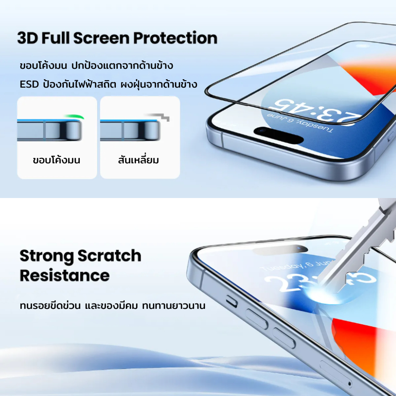 ✅มีความแข็งแรงของกระจกระดับ 9H สามารถทนต่อแรกกระแทกได้เป็นอย่างดี