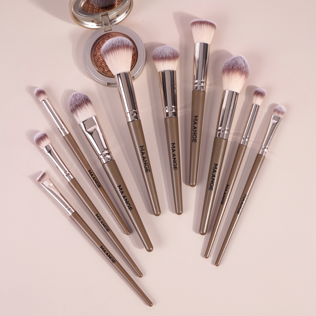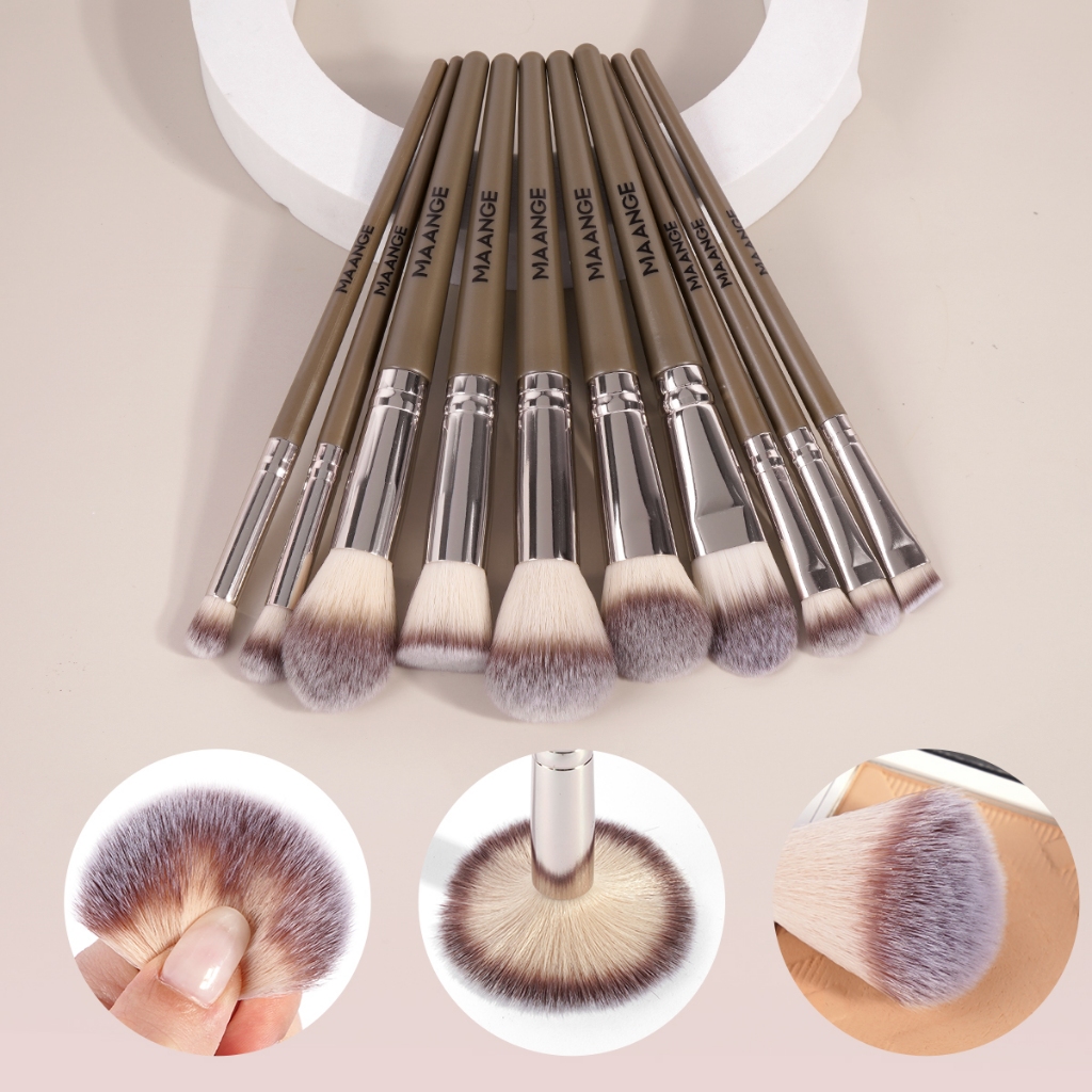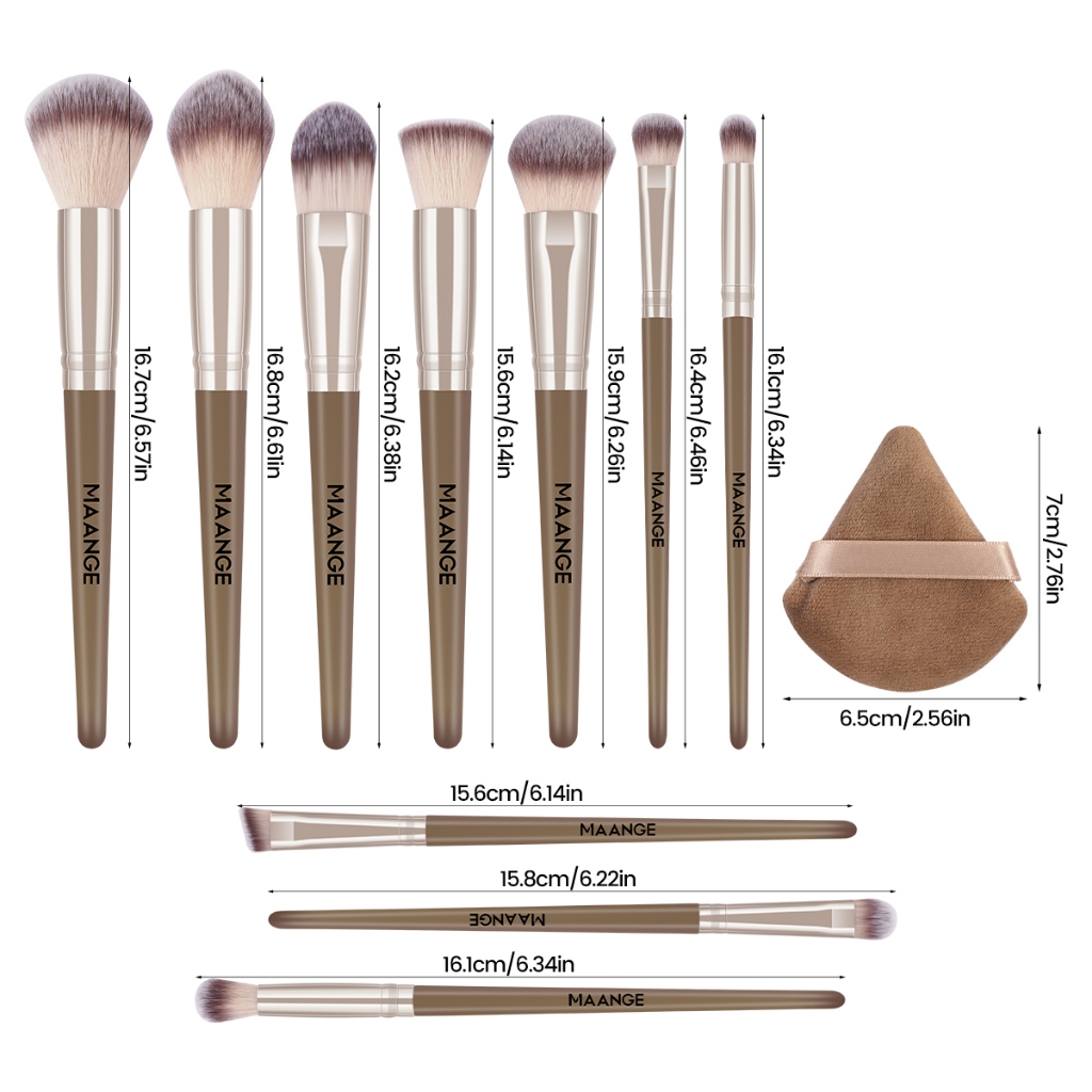 แปรงแต่งหน้า 10 ชิ้น + พัฟฟองน้ำสามเหลี่ยม 2 ชิ้น