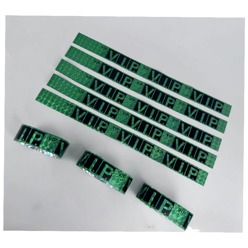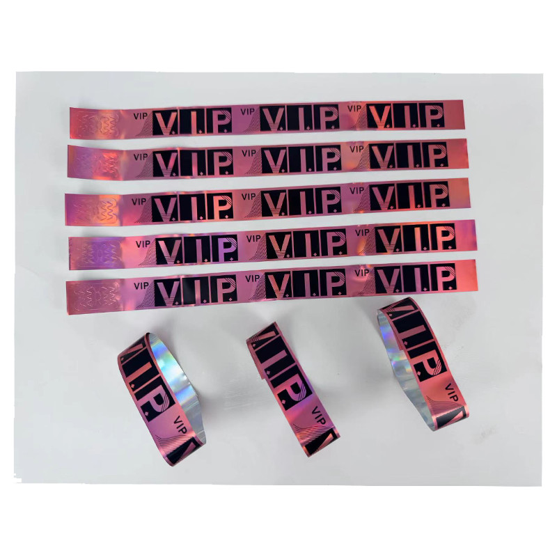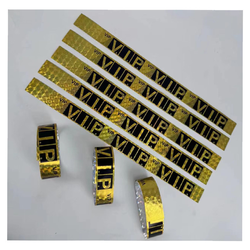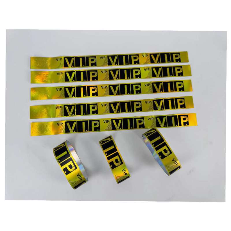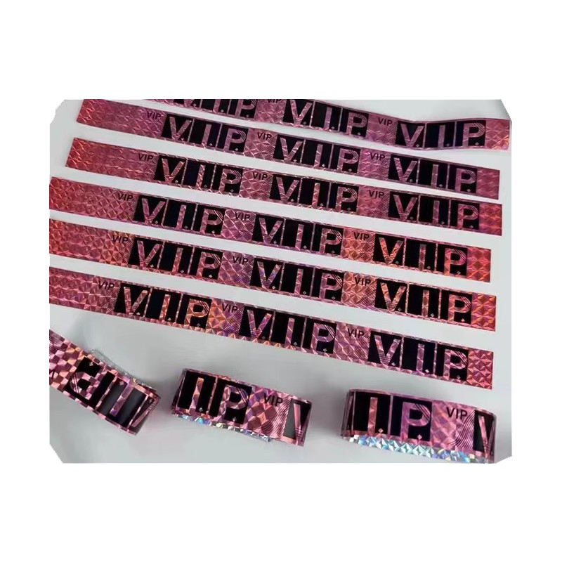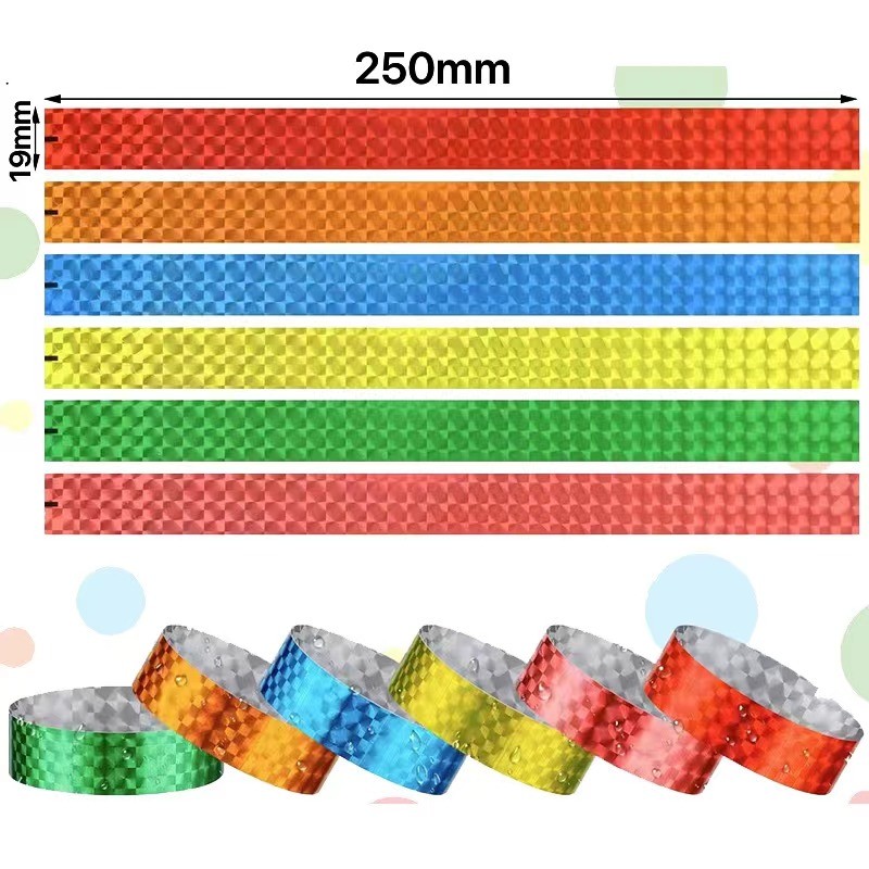 เลเซอร์ที่มีสีสันทิ้งสายรัดข้อมือตั๋วการประชุมการระบุกันน้ําสายคล้องมือสะท้อนแสงบาร์สโมสรกลางคืนสร้อยข้อมือการปรับแต่ง
