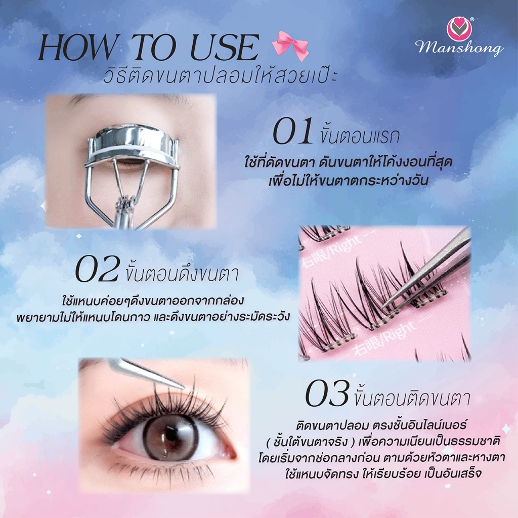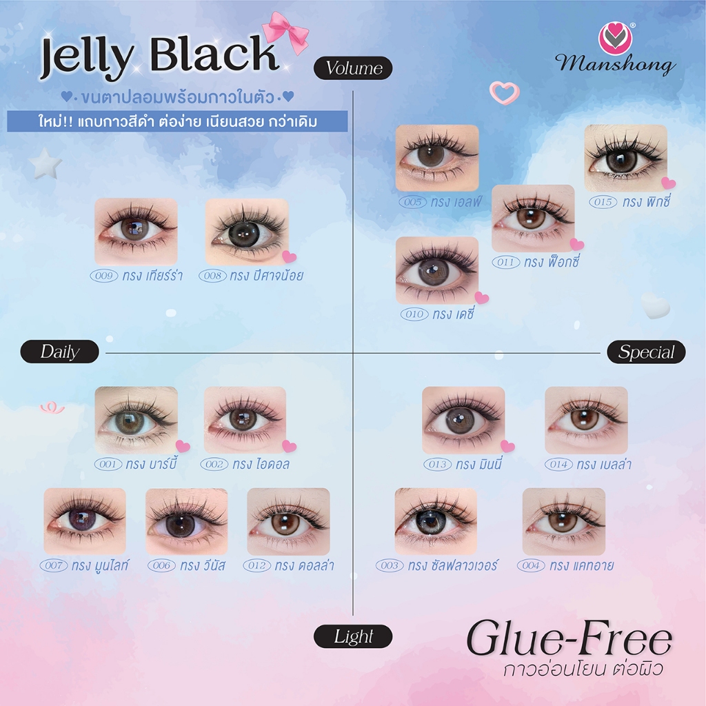 Manshong ขนตาปลอมมีกาวในตัว กาวสีดำ (ฟรีเเหนบ1ชิ้น/ออเดอร์) ติดเนียนแน่นหนึบกว่าเดิม FE65 by Manshong