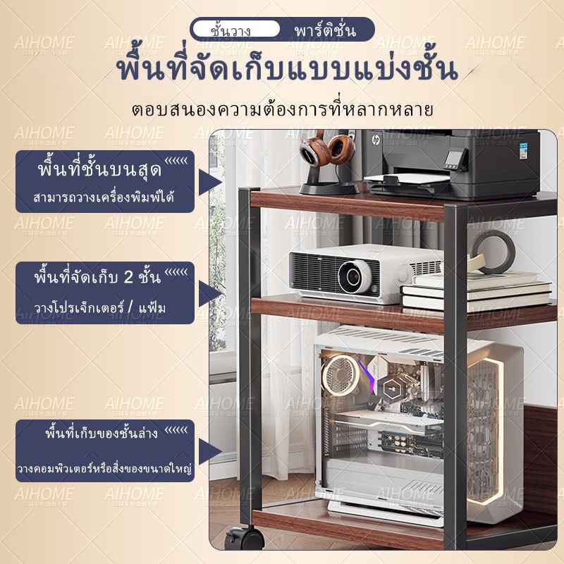 AiHome ชั้นเก็บเอกสาร ชั้นวางของ 2/3/4/5ชั้นชั้นเก็บเครื่องพิมพ์ ชั้นเก็บของในสำนักงาน ชั้นวางของหนังสือมีล้อ โครงเหล็ก