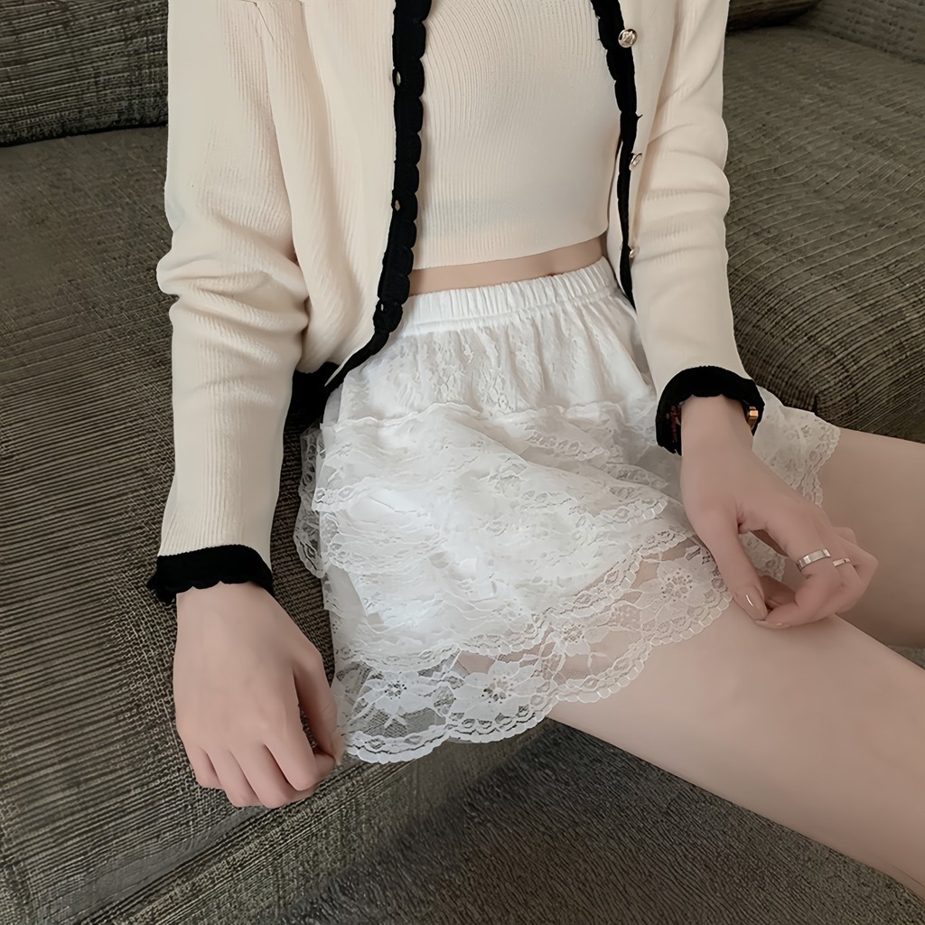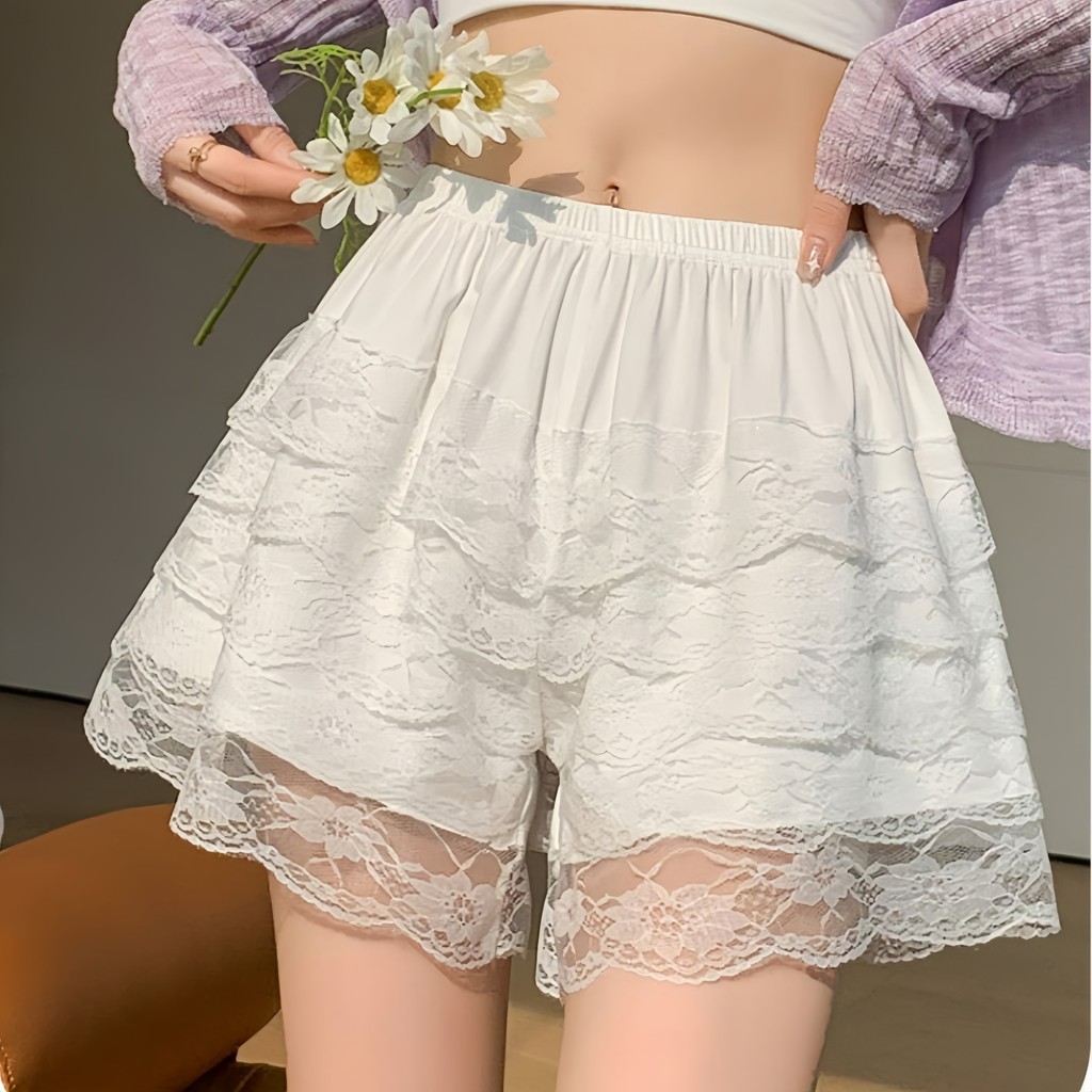 กางเกงขาสั้นลูกไม้ชั้นเค้ก สไตล์เกาหลี เอวสูง มีซับใน ผ้าใส่สบาย ไม่เป็นขุย ยางยืด “KK680” ?Miss Kitty❤️