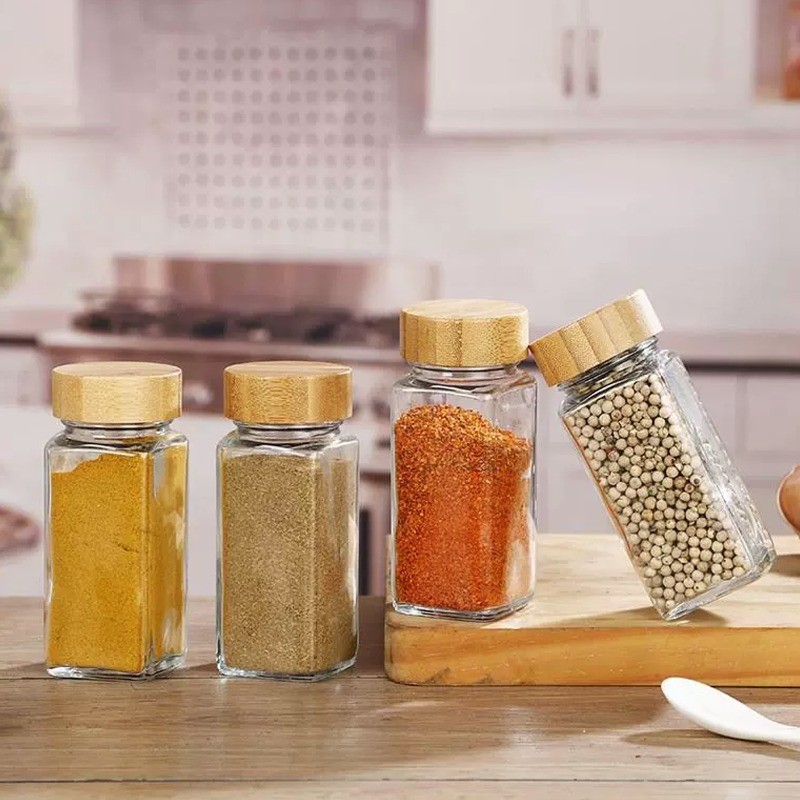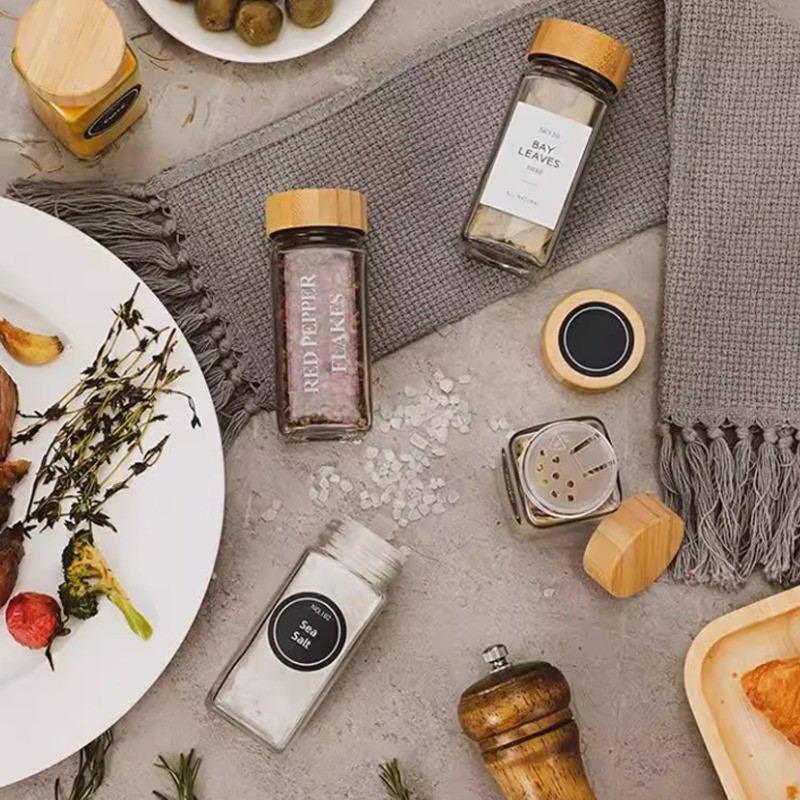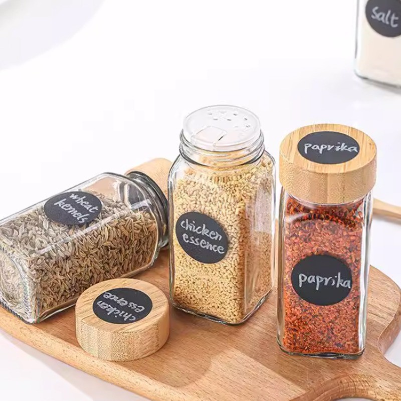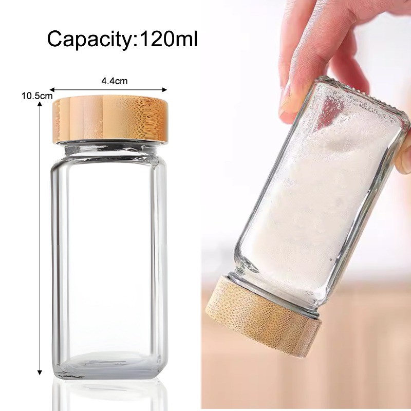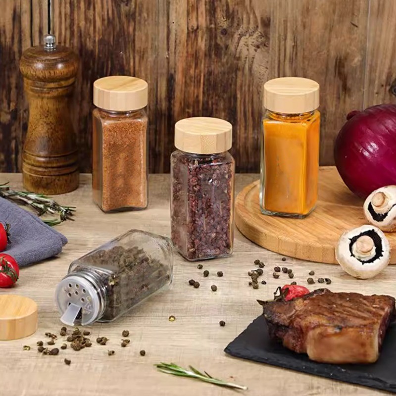 แก้วขวดเครื่องเทศสแควร์ใสปรุงรสขวดเก็บครัวเกลือเครื่องเทศพื้นดินพริกไทยปิดผนึกเครื่องมือ