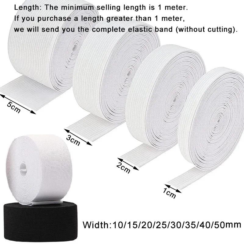 1m เย็บ Elastic Band 10/15/20/25/30/40/50 มม.ถัก Double-Side Elastic Spool ยืดความยืดหยุ่นสําหรับ DIY Craft กางเกงเย็บ