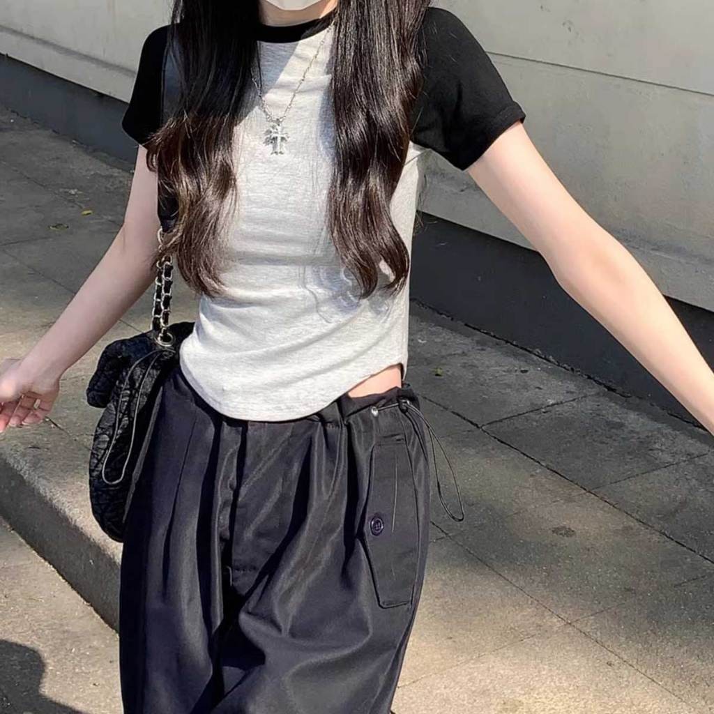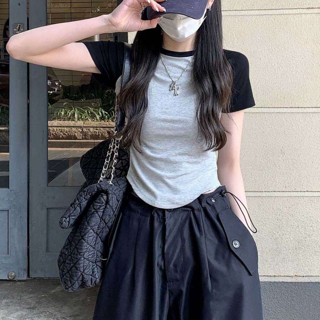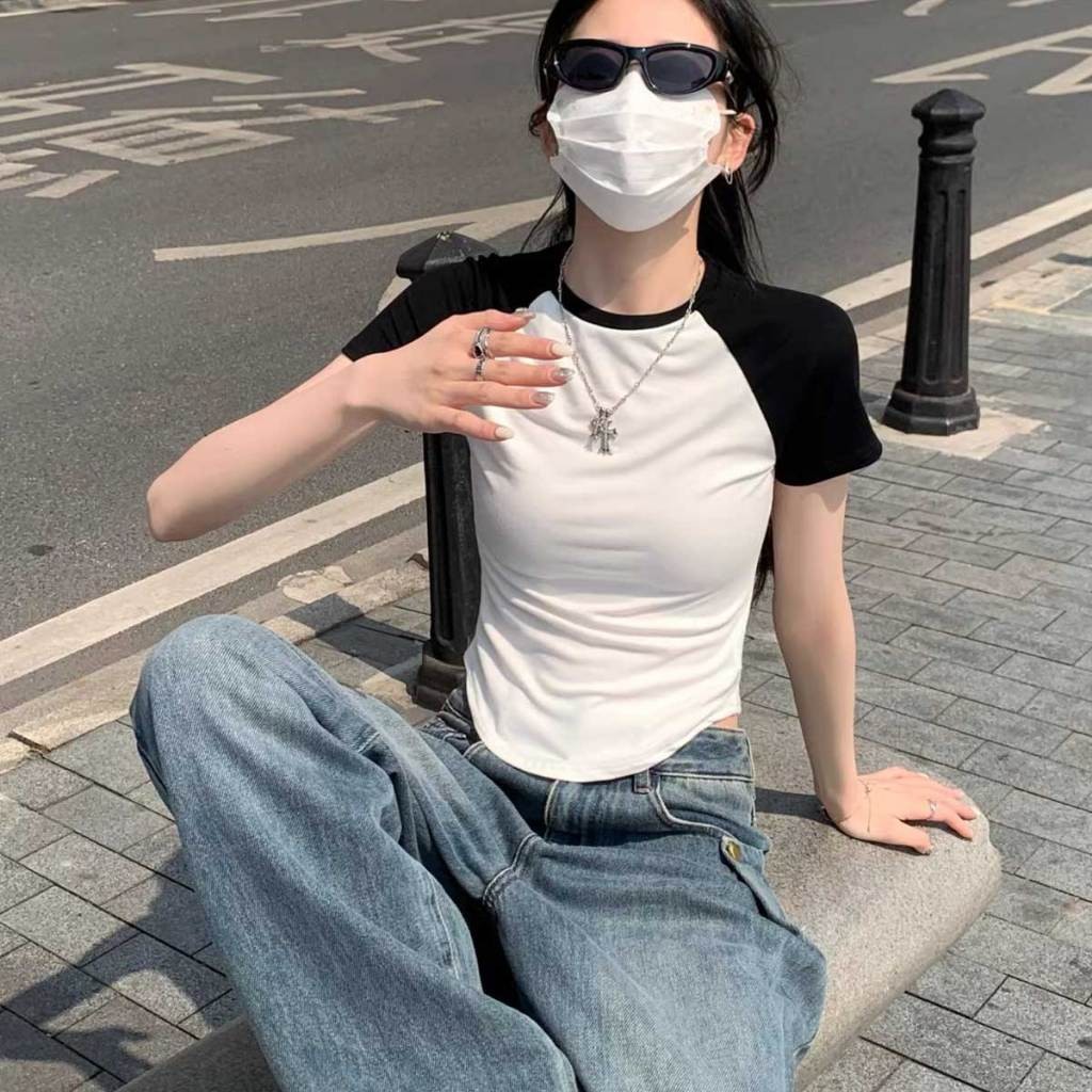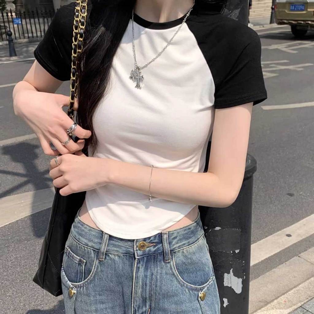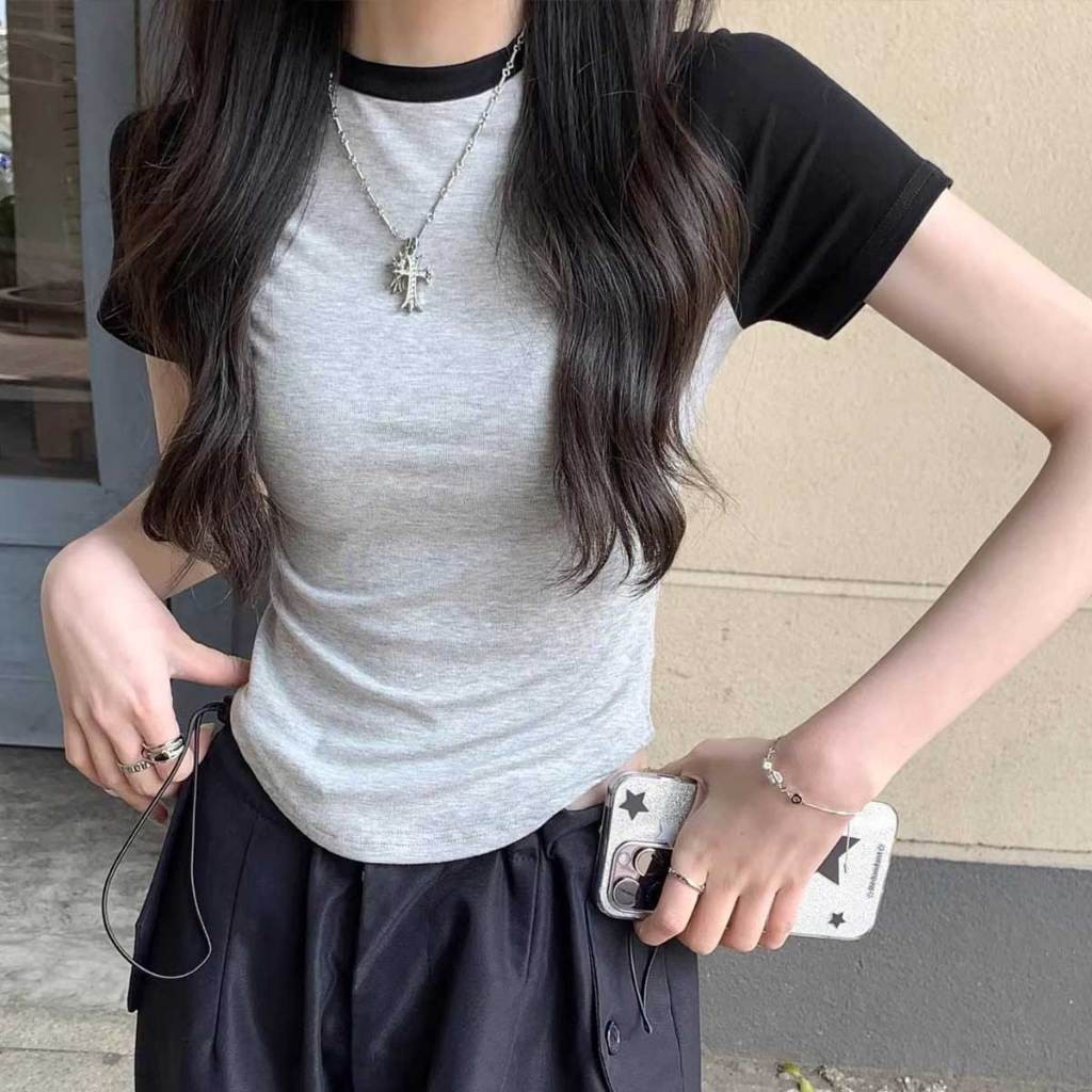 เสื้อยืดแขนสั้นสีผสมสำหรับผู้หญิง