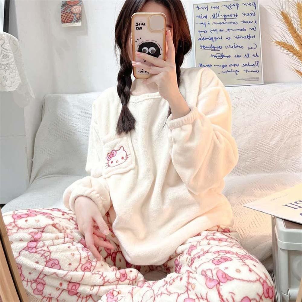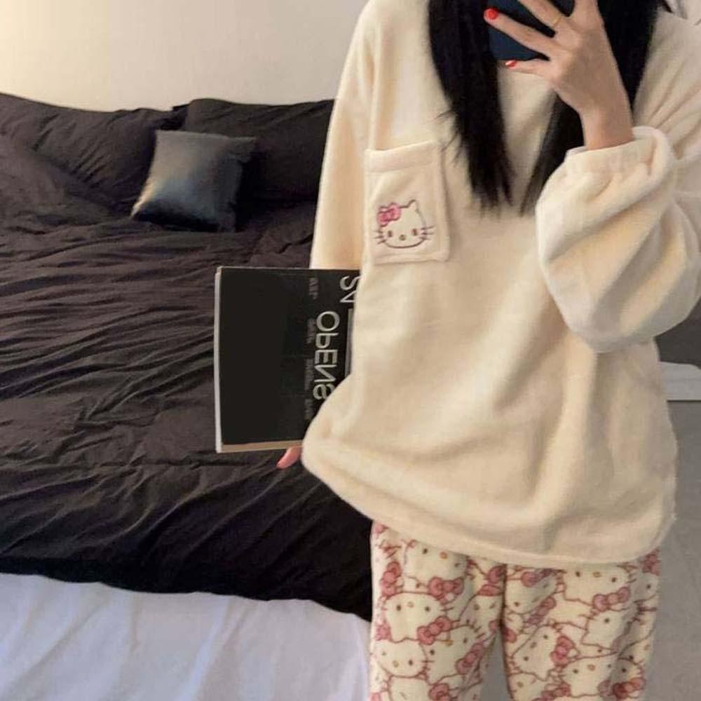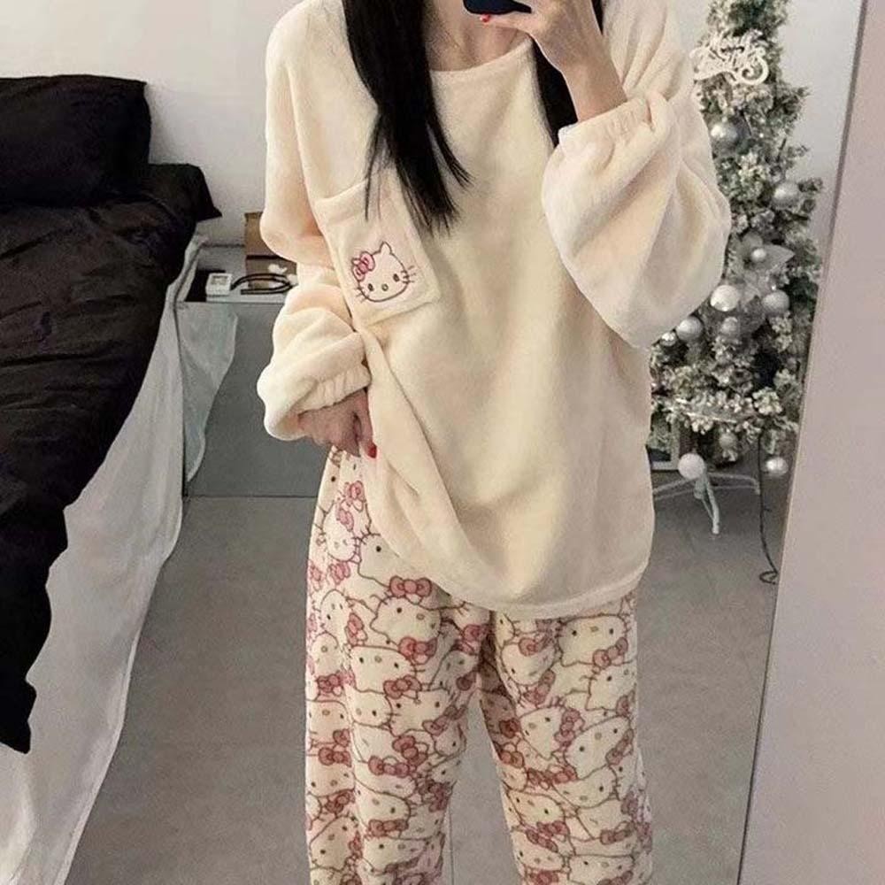 แพคเกจประกอบด้วย: ชุดนอนขนแกะปะการังแมวคิตตี้ 1 ชุด (เสื้อ + กางเกง)