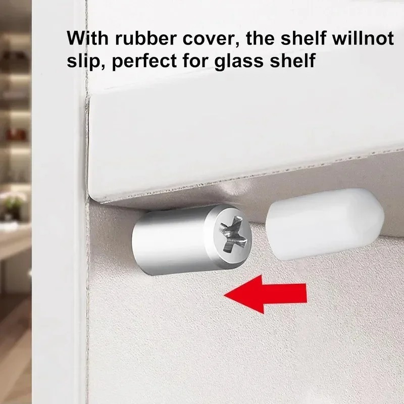 ข้ามสกรูแตะตัวเองที่มีแขนกันลื่น-ครัวแก้วเฟอร์นิเจอร์ตู้เสื้อผ้าชั้นวาง หมุด -ตัวยึดสกรูคงที่