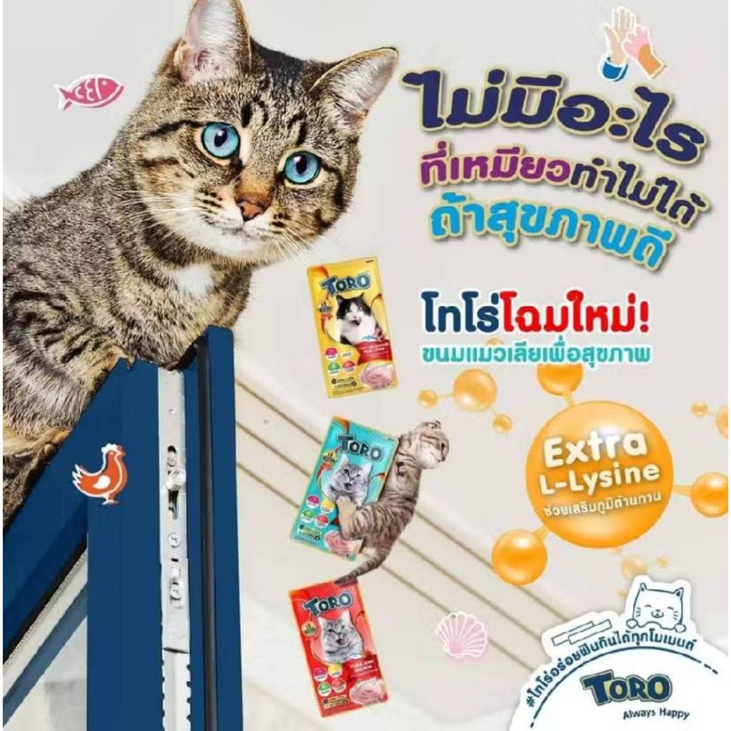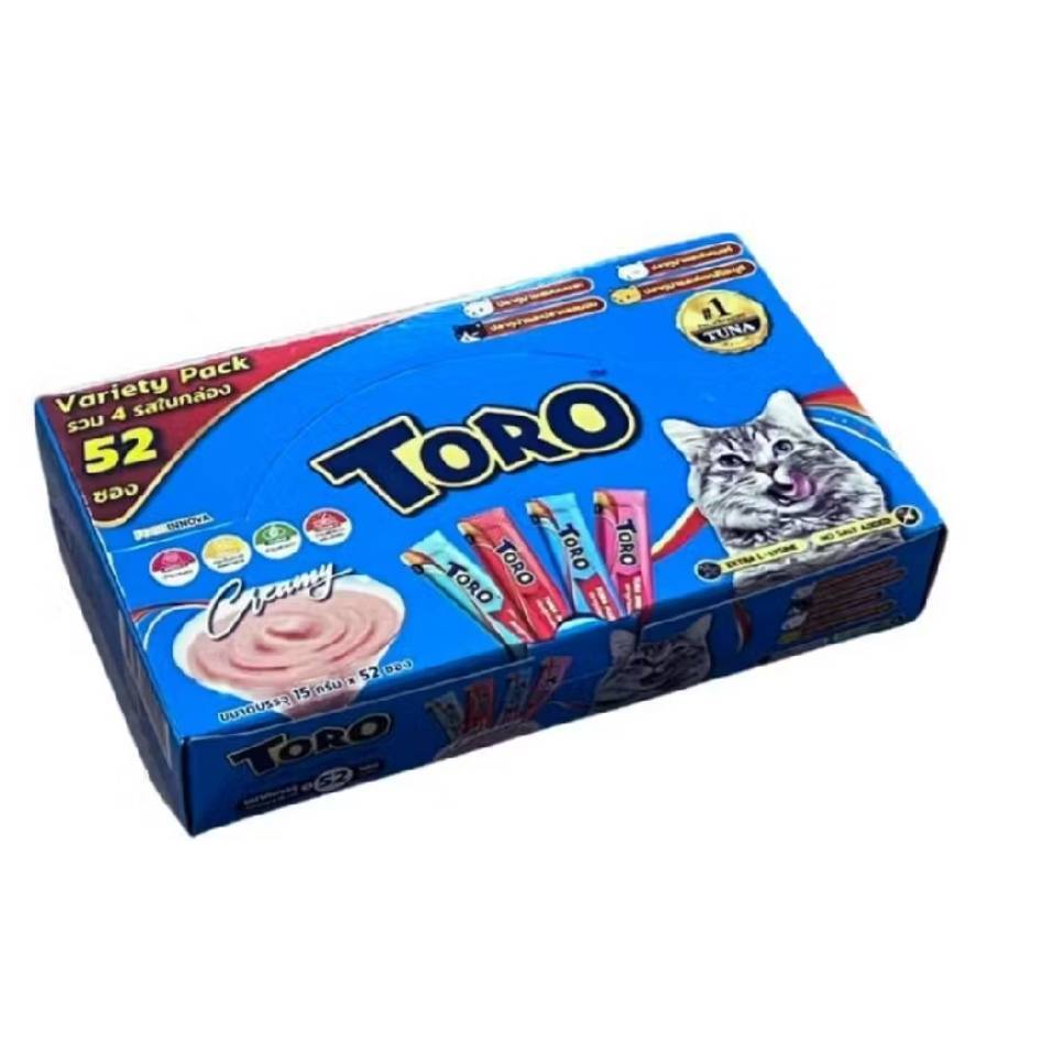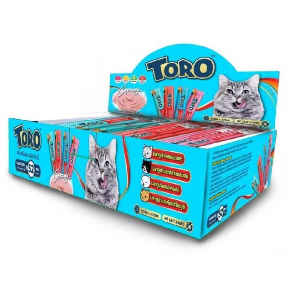 Toro Toro โทโร โทโร่ ขนมครีมแมวเลีย ขนาด 15 กรัม จำนวน52ซอง ครบ4รสชาติ