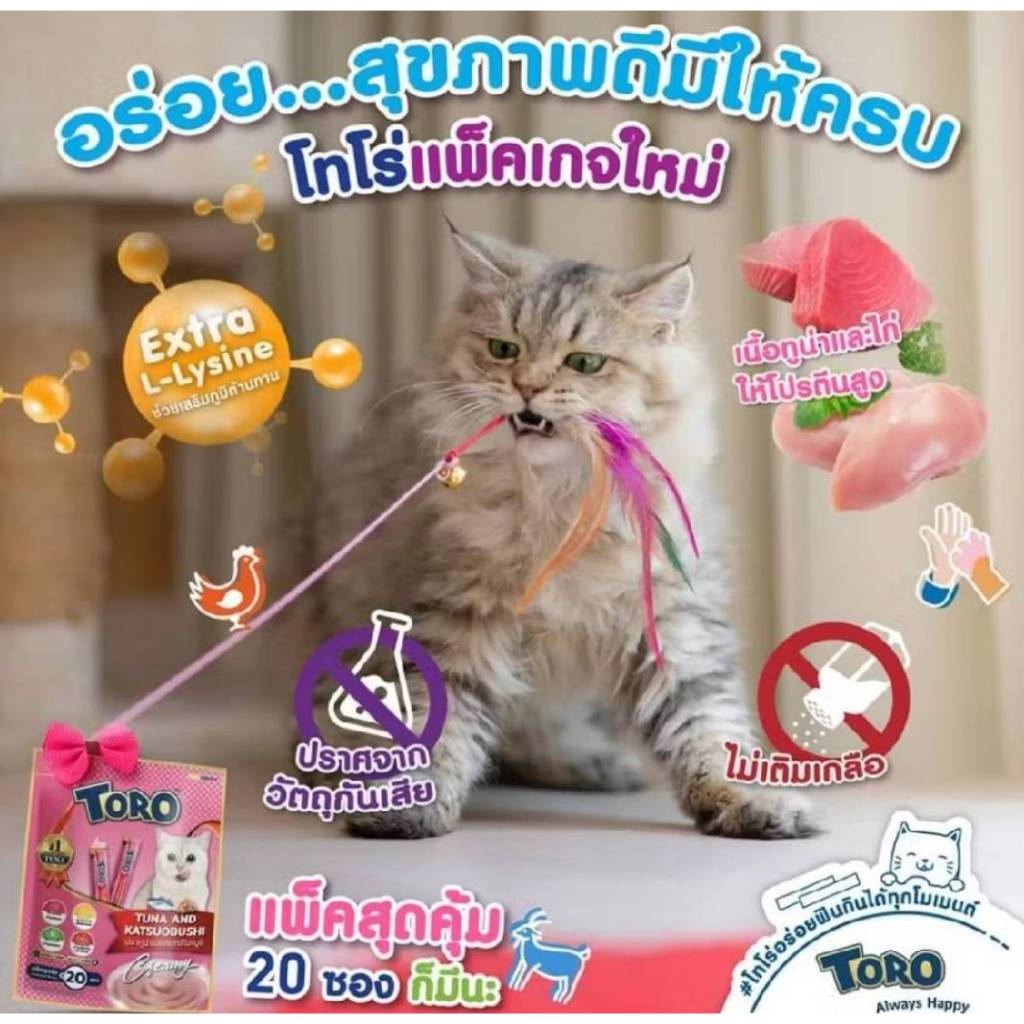 ขนมแมวเลียTOROขนาด52ซอง รวม4รสชาติใน1แพ็ค ผลิต 19/10/2022 หมดอายุ19/10/2025