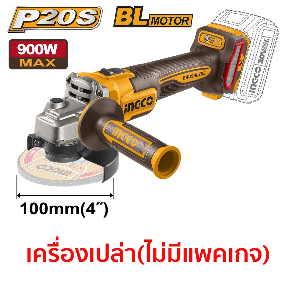 INGCO เครื่องเจียร์ไร้สาย 20 โวลต์ ขนาด 4 นิ้ว รุ่น CAGLI261021