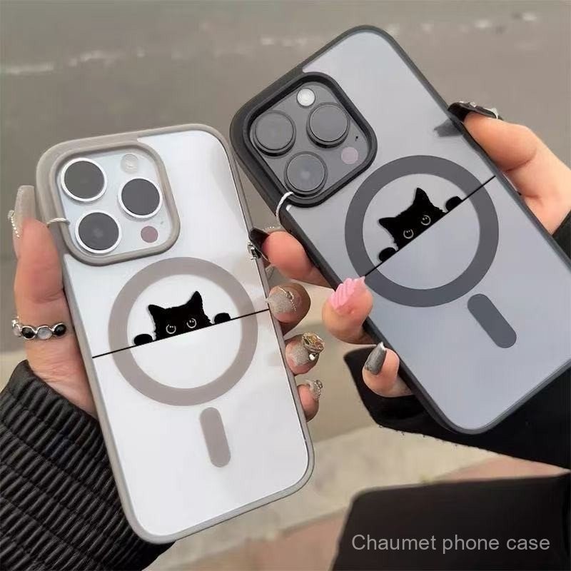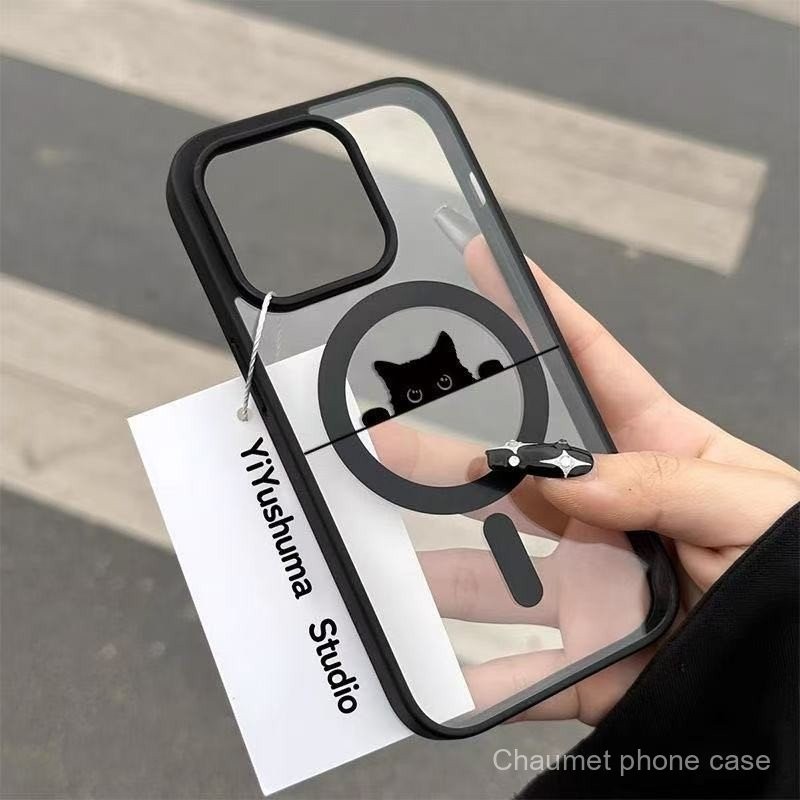 เคสโทรศัพท์ Probe Little Black Cat สำหรับ iPhone 16 Pro Max กันกระแทก 15 น่ารัก 13 เรียบง่าย 11 แม่เหล็ก 12 HDSS