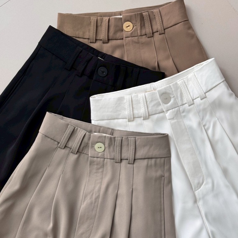 LAMSANG P17 Lylah Pants กางเกงขายาว เอวสูง ขากว้าง กระดุม ดีเทลเเต่งจีบคู่