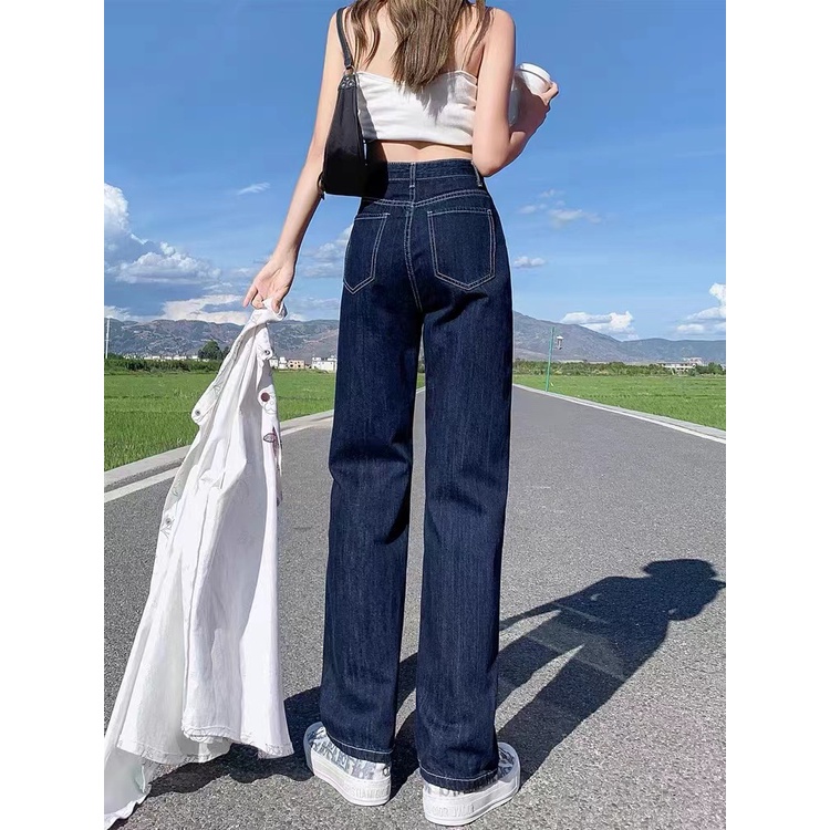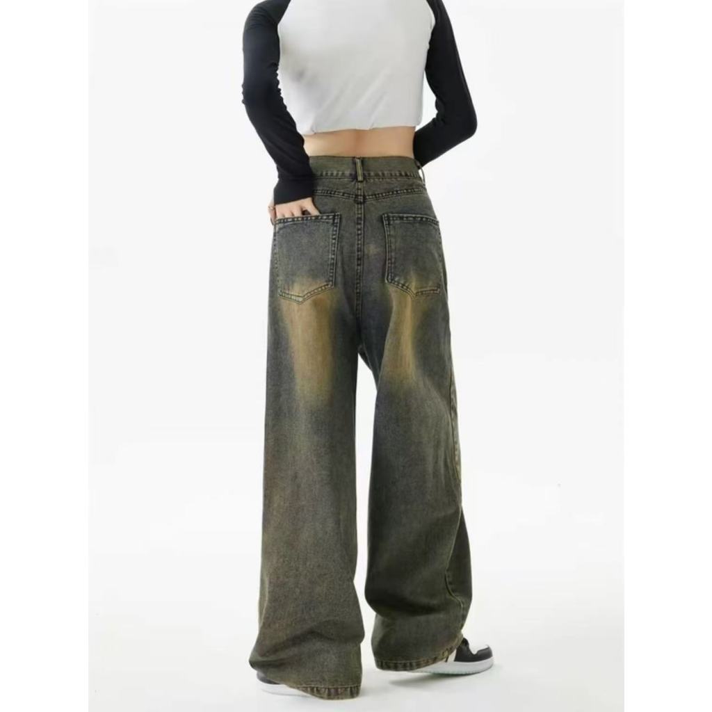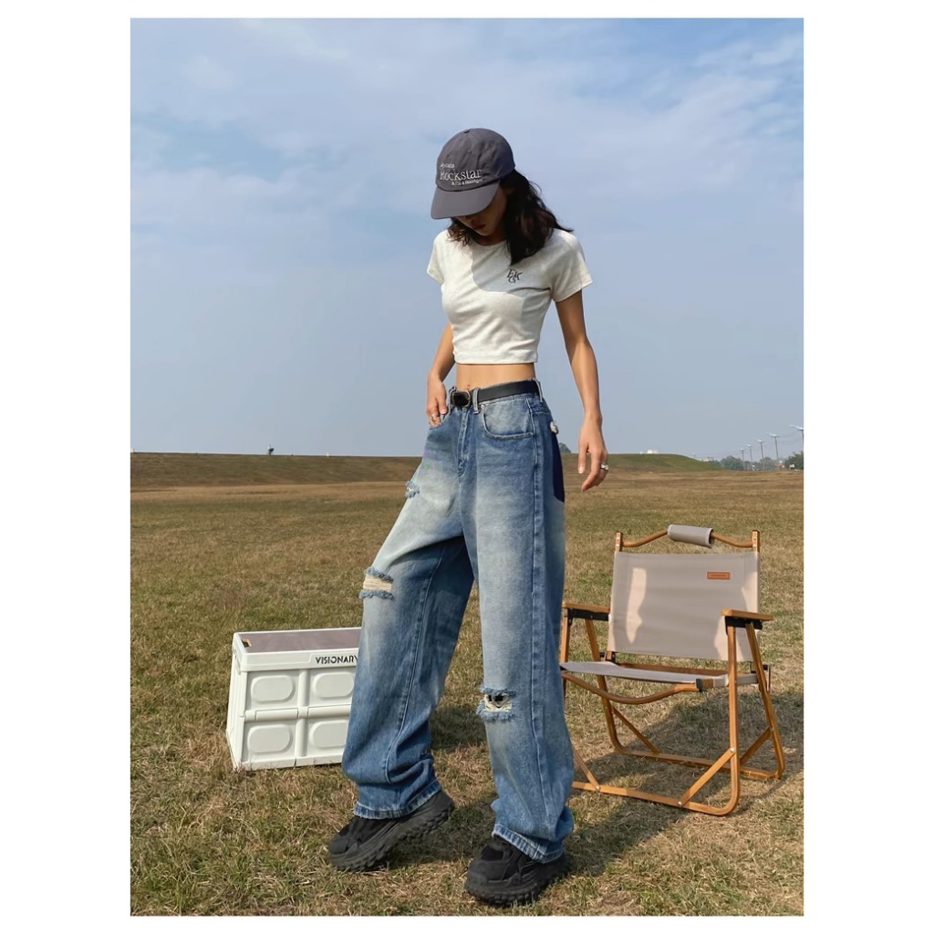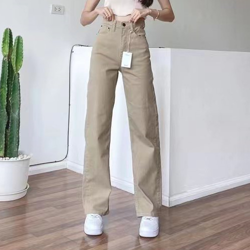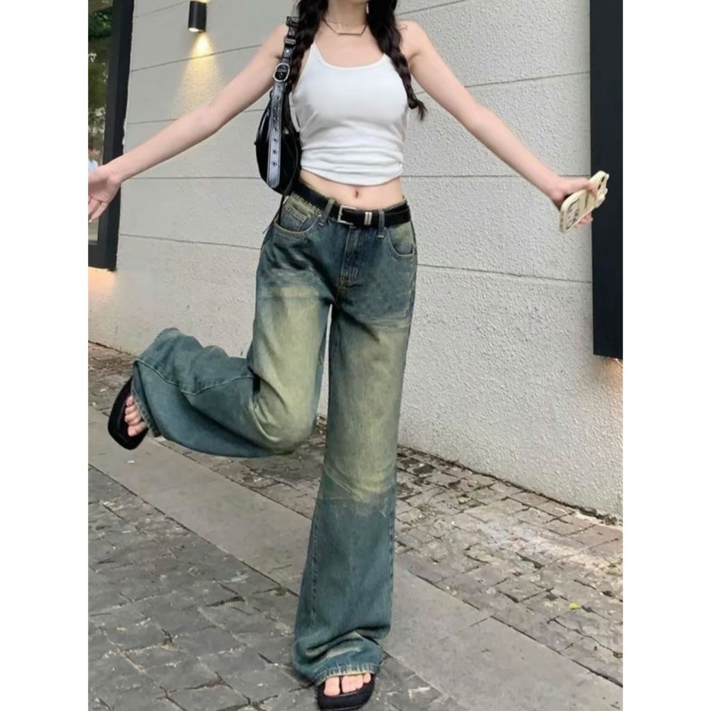 อเมริกันวินเทจกางเกงยีนส์เอวสูงสำหรับผู้หญิงในฤดูใบไม้ร่วงกางเกงเอวสูงกางเกงขาสั้นกางเกงตรง เสื้อผ้ายอดนิยม