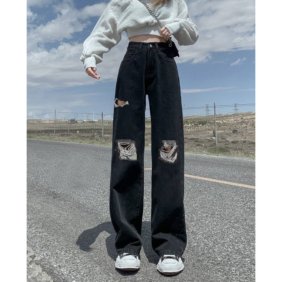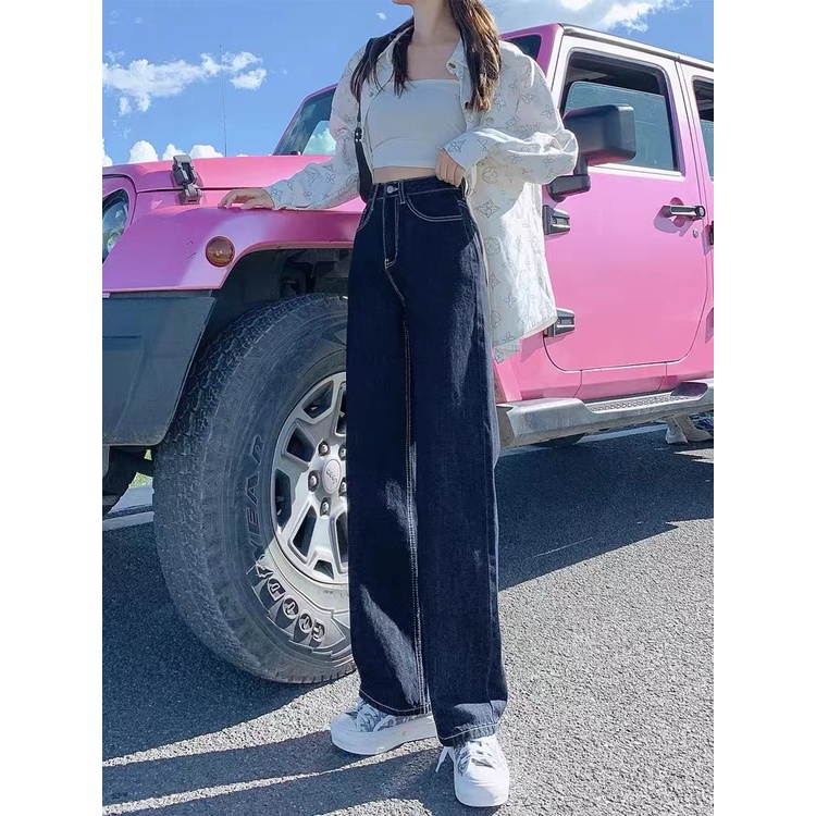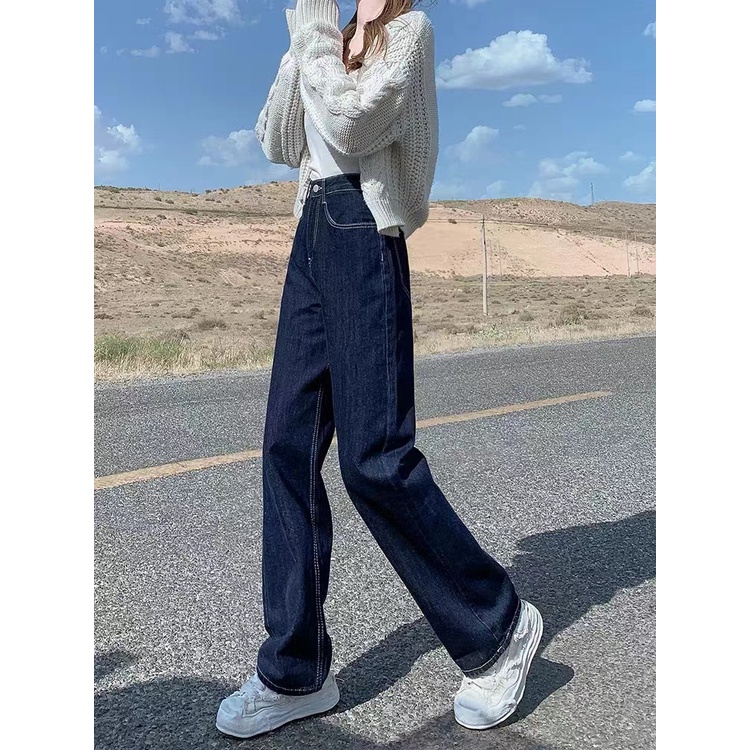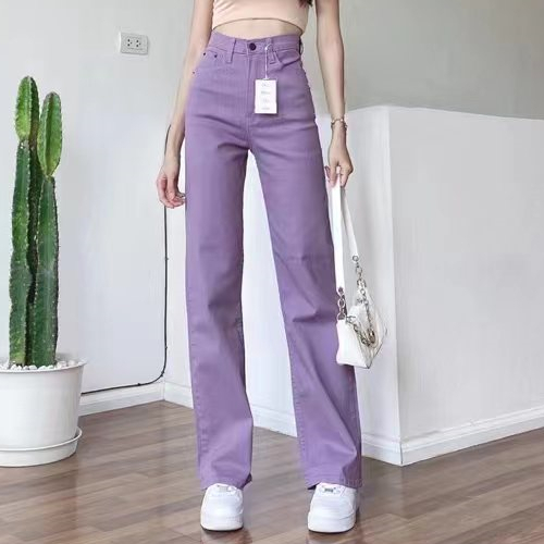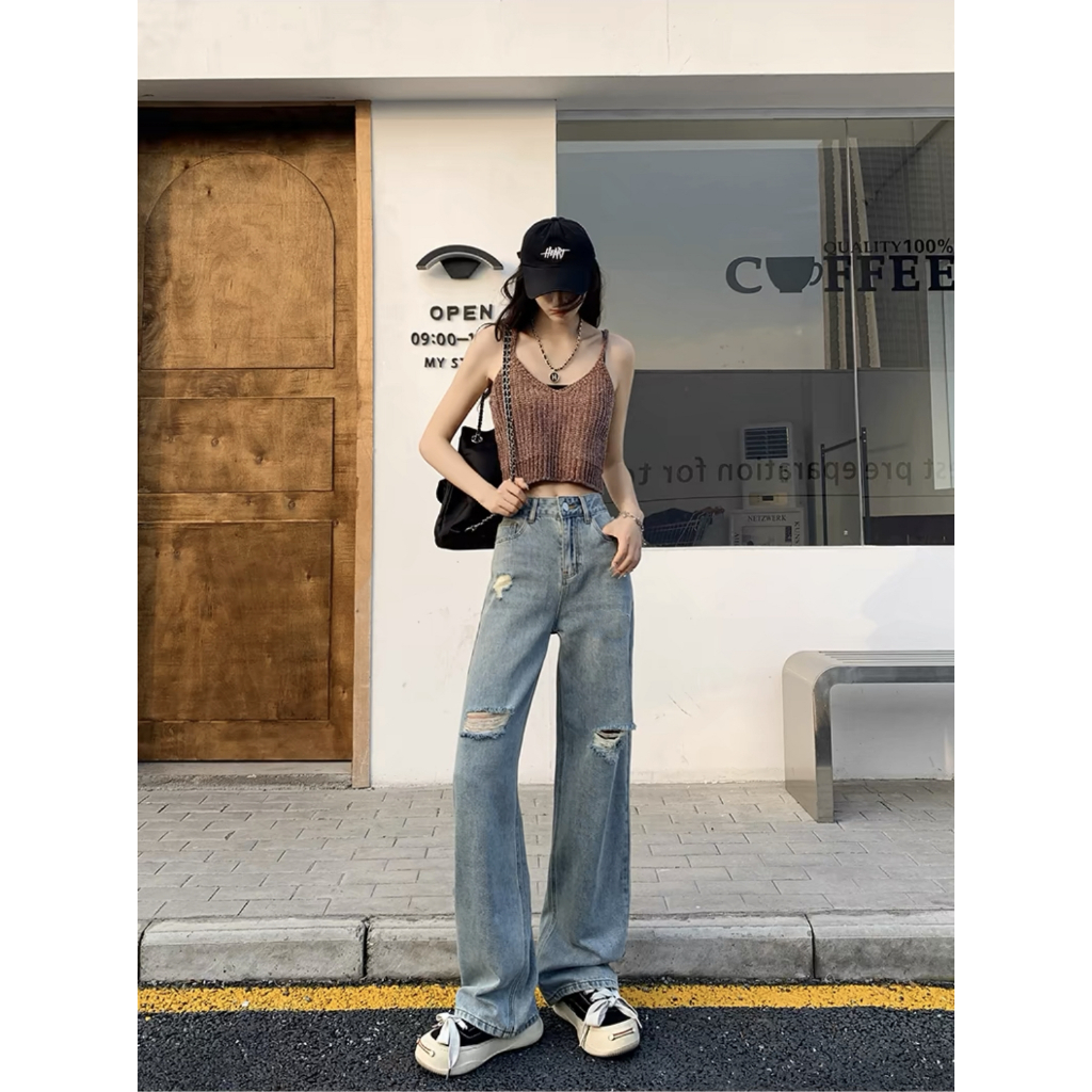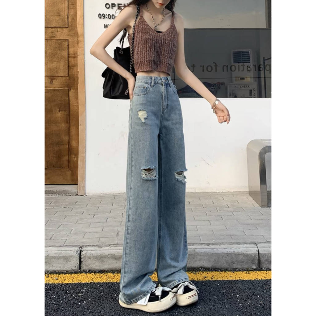 อเมริกันวินเทจกางเกงยีนส์เอวสูงสำหรับผู้หญิงในฤดูใบไม้ร่วงกางเกงเอวสูงกางเกงขาสั้นกางเกงตรง เสื้อผ้ายอดนิยม