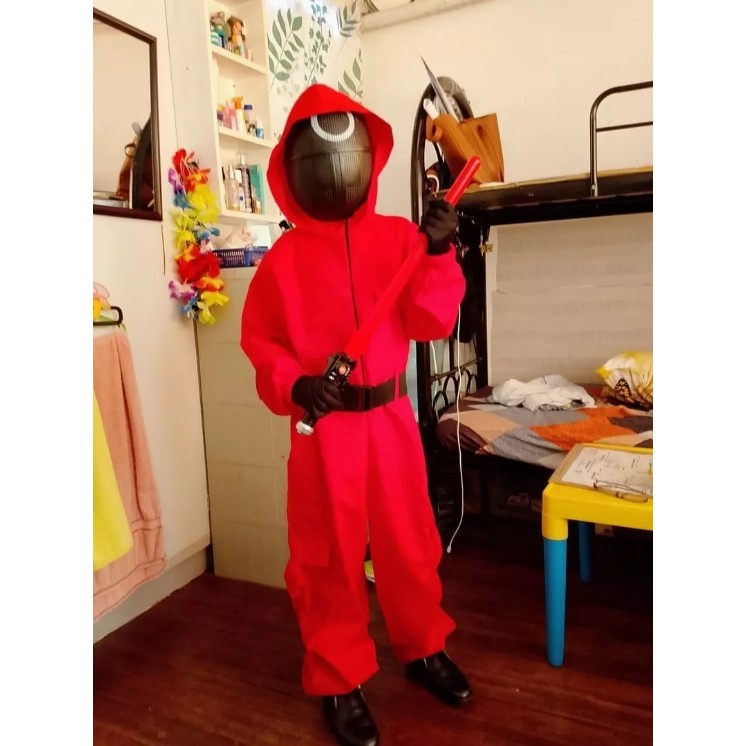 สินค้าพร้อมส่งทันที ชุดจั๊มสูท+หน้ากาก+เข็มขัด+ถุงมือ,ชุดคอสเพลย์เกมปลาหมึก,สำหรับผู้ใหญ่และเด็ก,สำหรับผู้ชายและผ