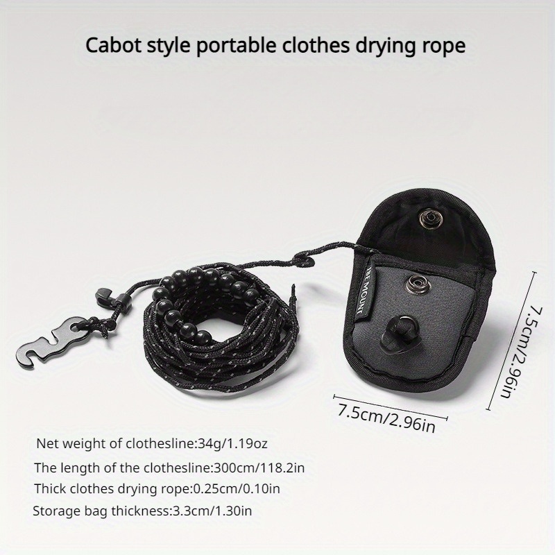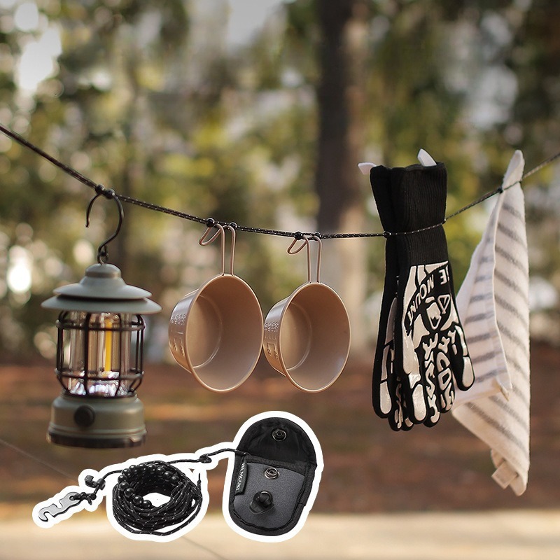 ราวตากผ้าแบบปรับได้ 3 เมตรแบบพกพา – กันลม, การออกแบบลูกปัดสําหรับตั้งแคมป์กลางแจ้งและการเดินทาง