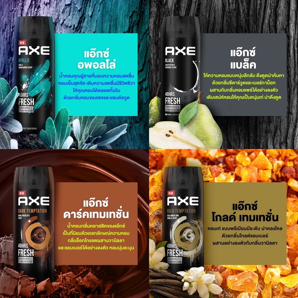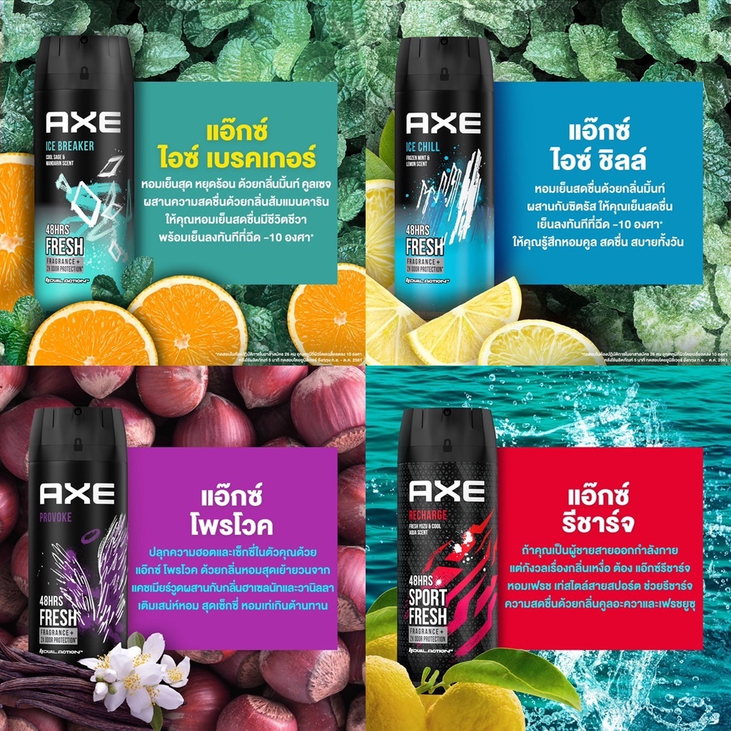 แอ๊กซ์ สเปรย์น้ำหอมระงับกลิ่นกาย ด้วยเทคโนโลยี ซิงค์คอมเพล็กซ์ จัดการต้นเหตุของกลิ่นกาย ช่วยปกป้องกลิ่นกายยาวนาน 48 ชม* หอมยาวนาน ให้คุณมั่นใจ หมดกังวลเรื่องกลิ่นกาย