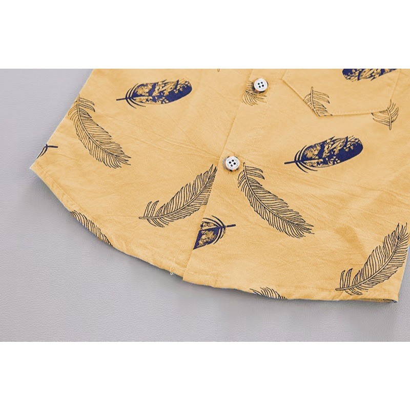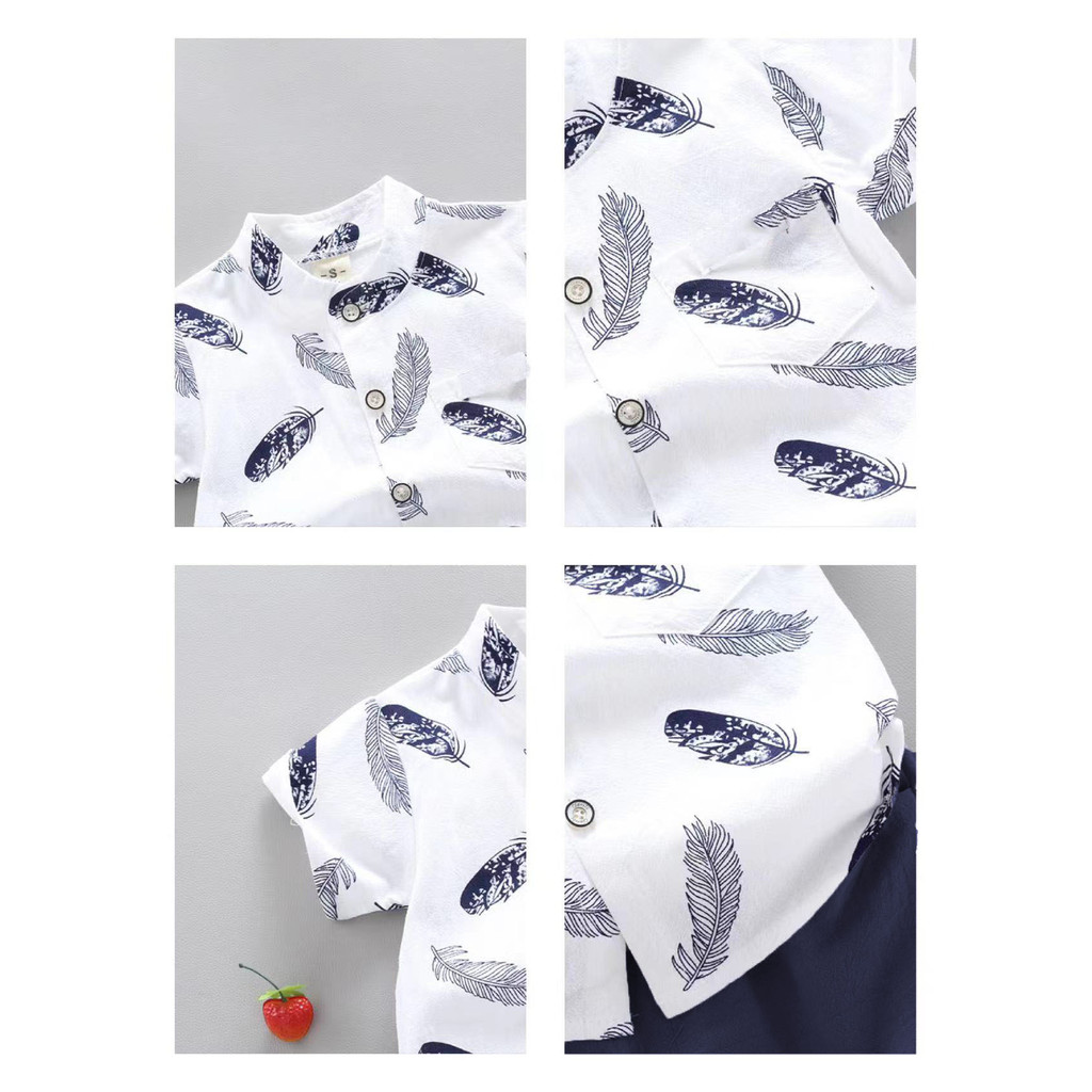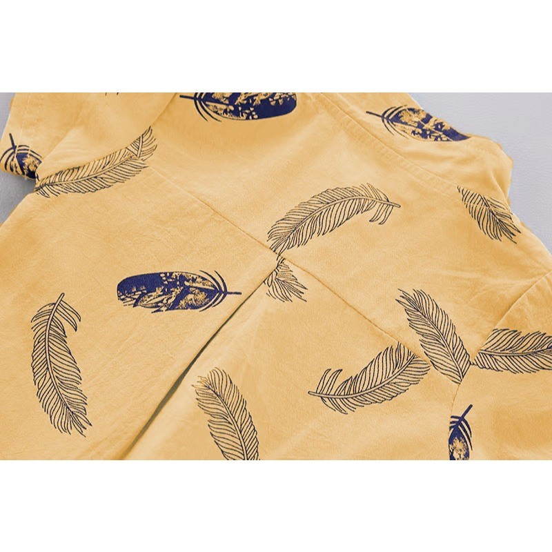 ชุดเซ็ตเด็กผู้ชาย เชิ้ตคอจีน+กางเกง ลายขนนก