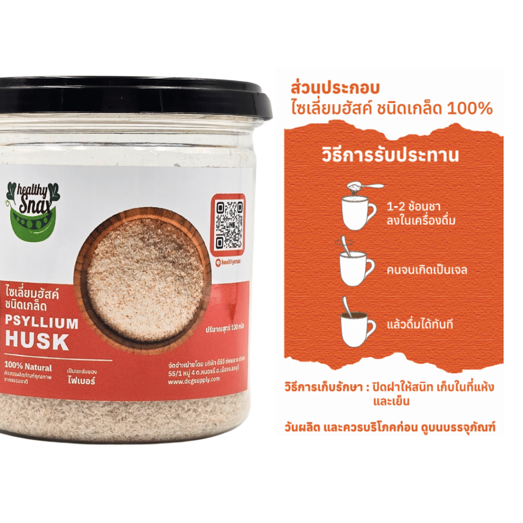 Healthy Snax ไซเลี่ยมฮัสค์ เกรดพรีเมี่ยม ชนิดเกล็ด Psyllium Husk ไฟเบอร์ ไซเลี่ยม ฮัสค์