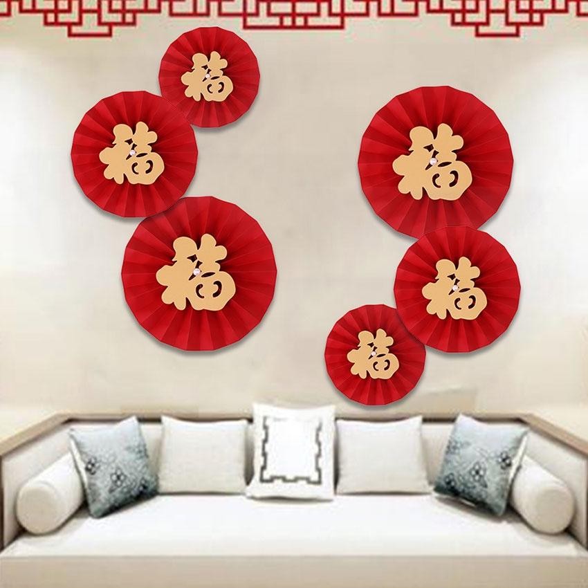 2026 ปีใหม่ พัดกระดาษสไตล์จีน สําหรับติดตกแต่งประตู หน้าต่าง ผนัง เทศกาลตรุษจีน 6 ชิ้น cny