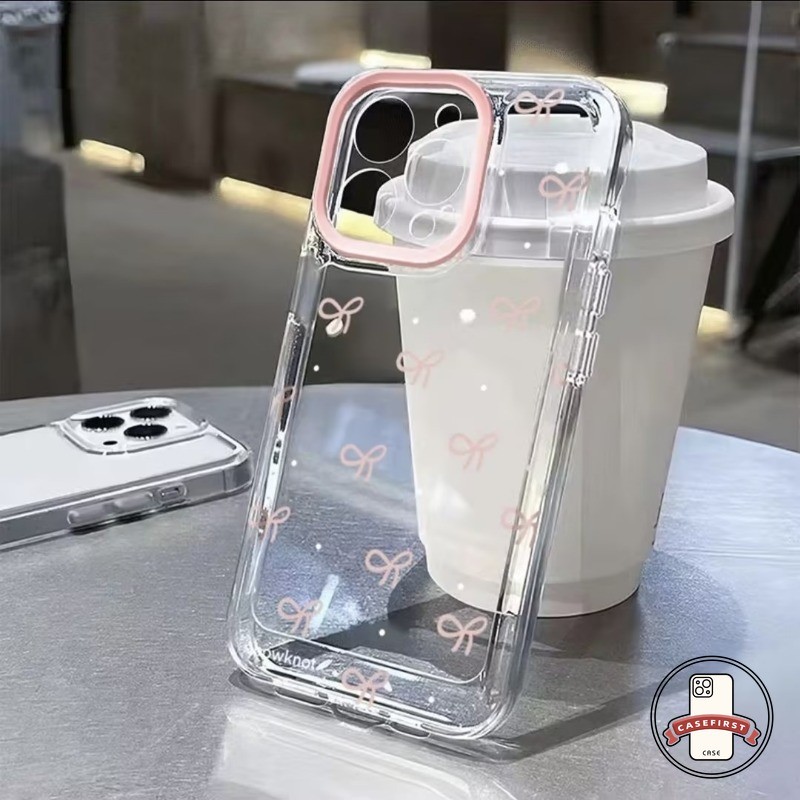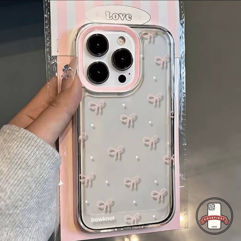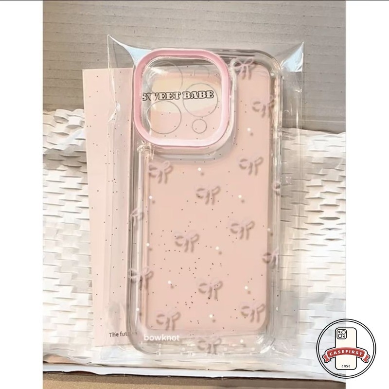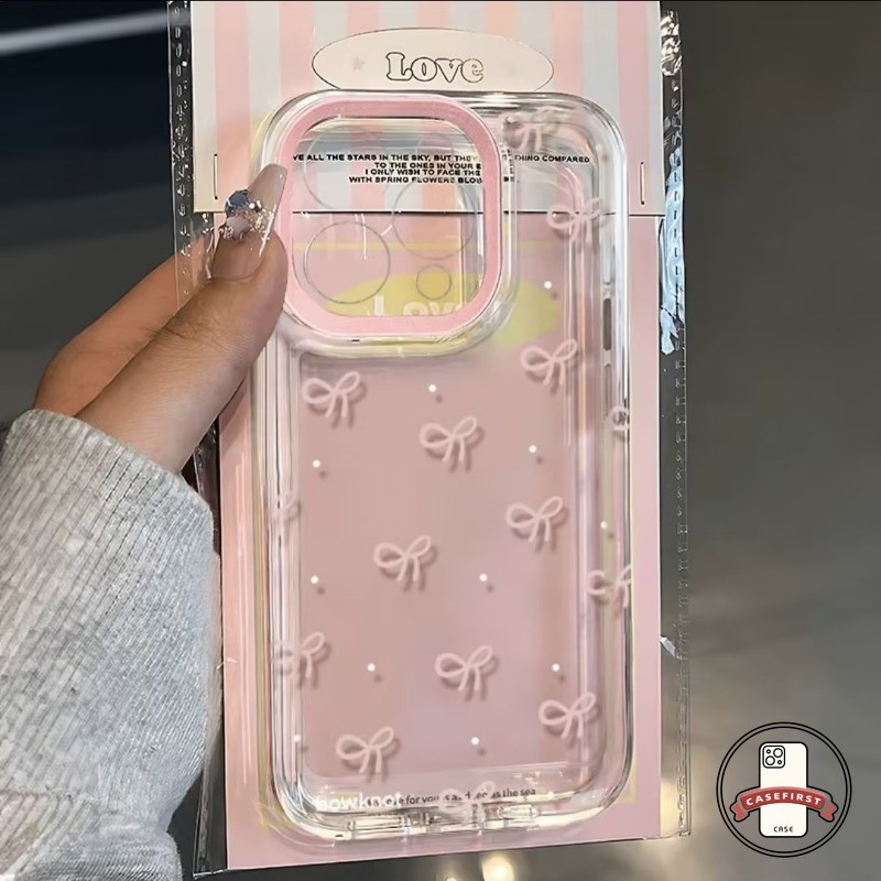 โปร่งแสงจุดโบว์โบว์น่ารักน่ารักสีชมพูนุ่ม เคส iPhone 7Plus 11 16 15 13 14 12 Pro Max X XS Max XR 16 8 6 7 14 15 Plus SE