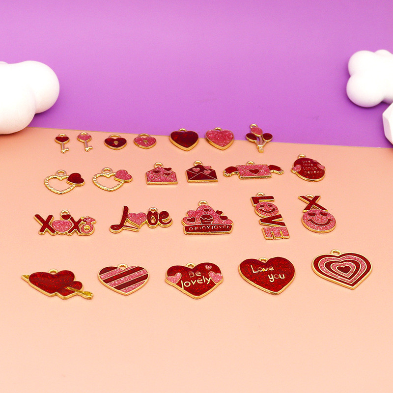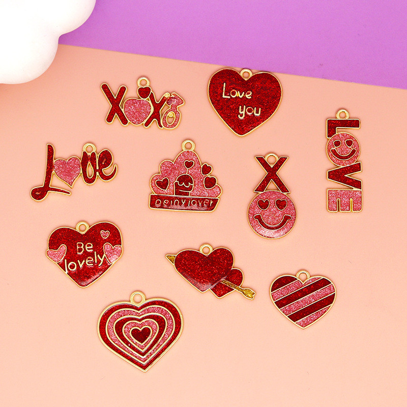 2 ชิ้น/ล็อตการ์ตูนวันวาเลนไทน์หัวใจรักโลหะผสมเคลือบจี้อุปกรณ์เสริม Charms สําหรับผู้หญิง, Key Chain/ต่างหู/สร้อยคอจี้ทําด้วยมือ DIY เครื่องประดับ 236