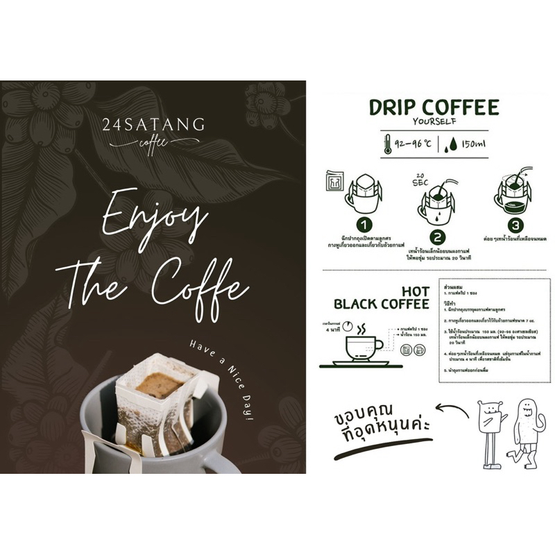 กาแฟดริป แบบซอง Drip Bag Coffee (คั่วกลาง-เข้ม) กาแฟดริปสำเร็จรูป ขนาด 10 กรัม