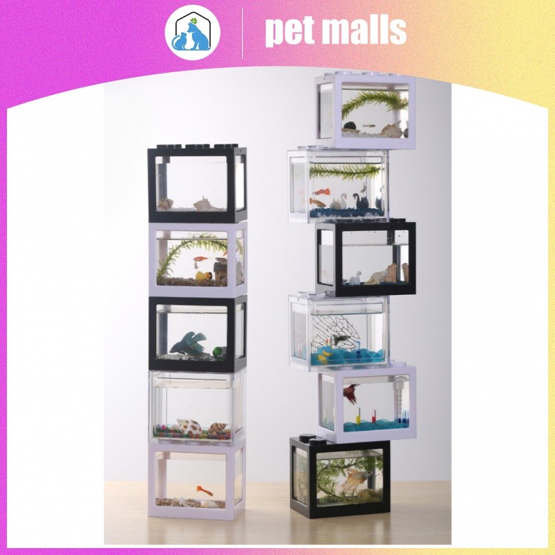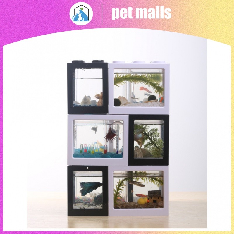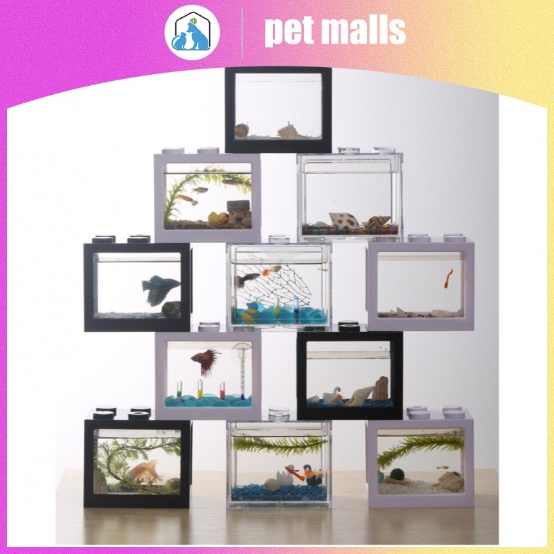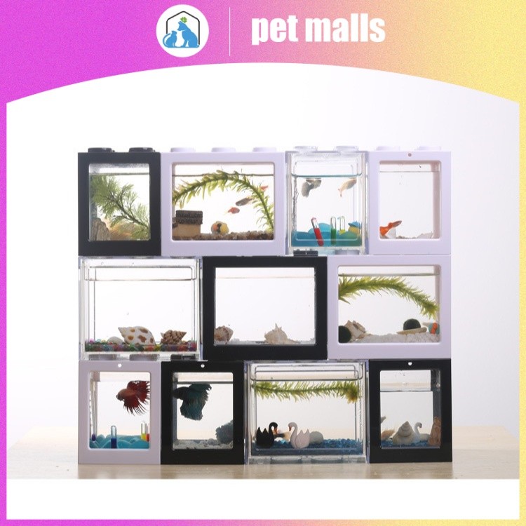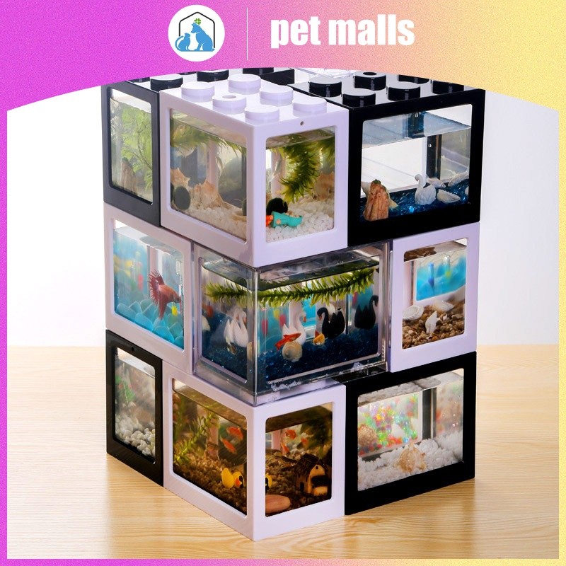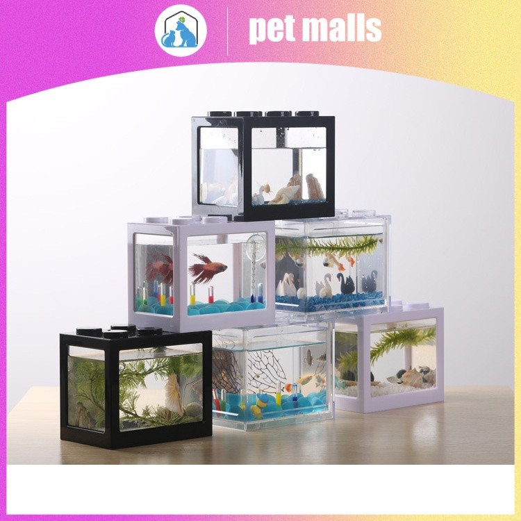 PET MALLS ตู้ปลาขนาดเล็กอะคริลิคใสสร้างบล็อกถังปลาทองตู้ปลาทองตู้ปลาทอง