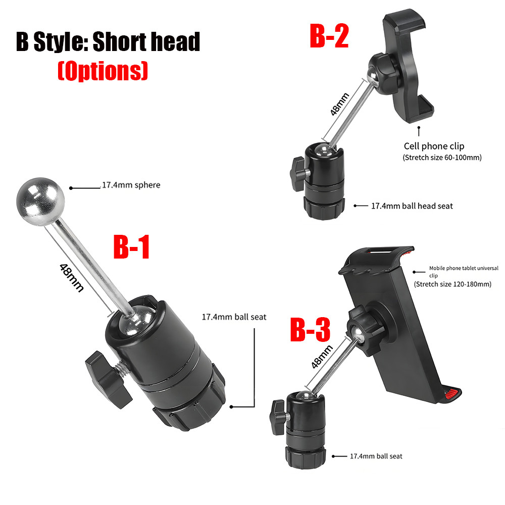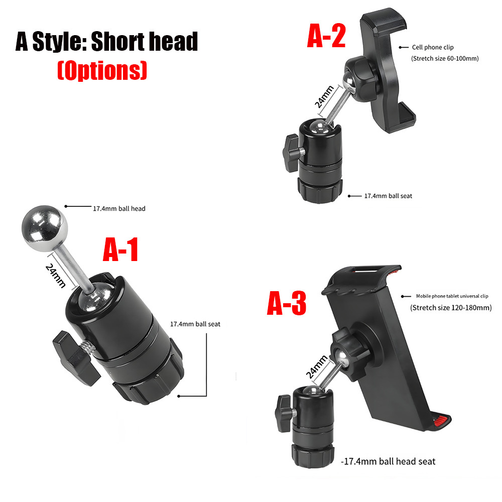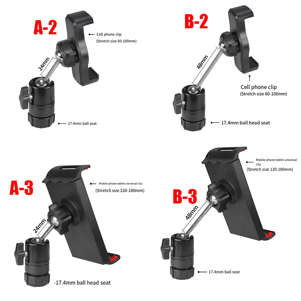 หัวบอล 17.4 มม. หัวต่อโทรศัพท์มือถือแท็บเล็ตอุปกรณ์เสริมที่หนีบปรับมุมได้ 360 องศาแปลงโทรศัพท์มือถือขาตั้งอุปกรณ์ถ่ายภาพขาตั้งกล้องหนีบโทรศัพท์มือถือ