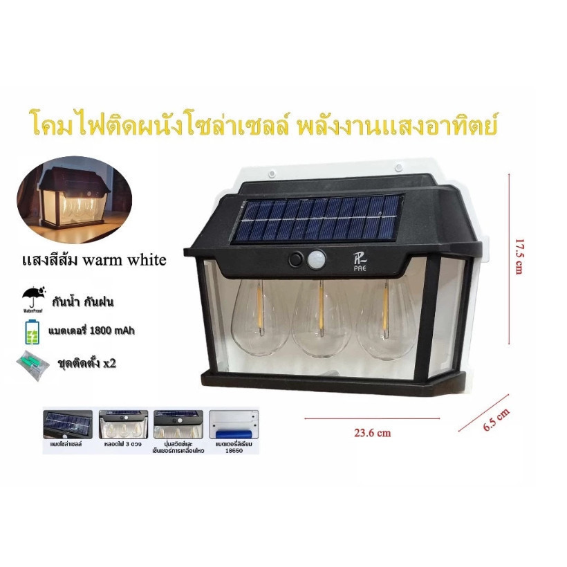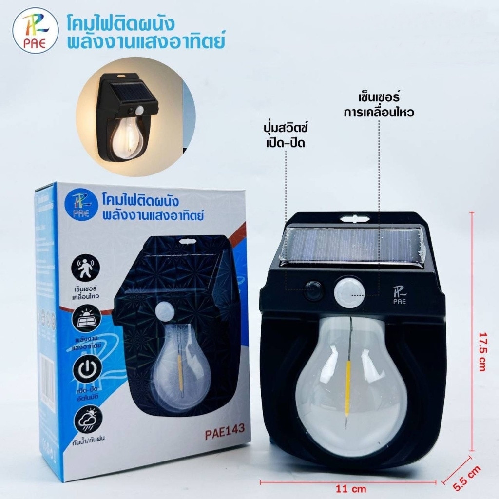 โคมไฟ ไฟติดผนัง พลังงานโซล่าเซลล์ ไฟโซล่าเซลล์ LED พลังงานแสงอาทิตย์