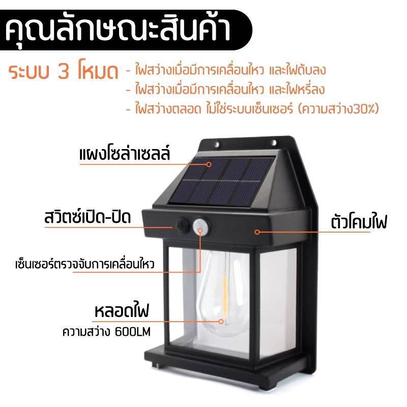 โคมไฟโซล่าเซลล์ LED ติดผนัง 3โหมด สว่างมาก ค่าไฟ0บาท กันฝน ตกแต่งบ้านสวยงาม