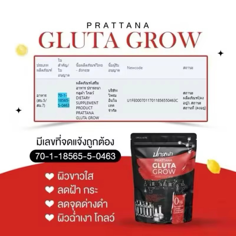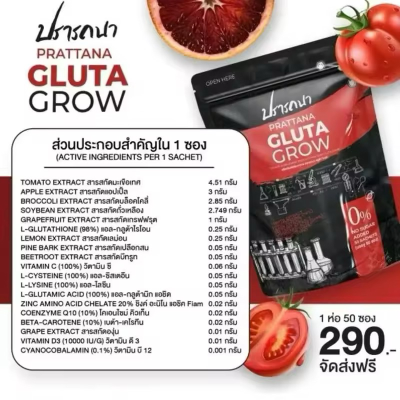 ปรารถนากลูต้า โกลว์ Prattana Gluta Gold 1 ห่อ 50 ซอง