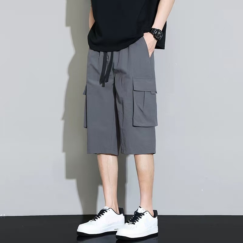 ✨BECoolMan✨ กางเกงเจ็ดส่วนผู้ชาย แบบบางสำหรับฤดูร้อน แบบหลวม ลำลอง เทรนด์สไตล์ฮ่องกง